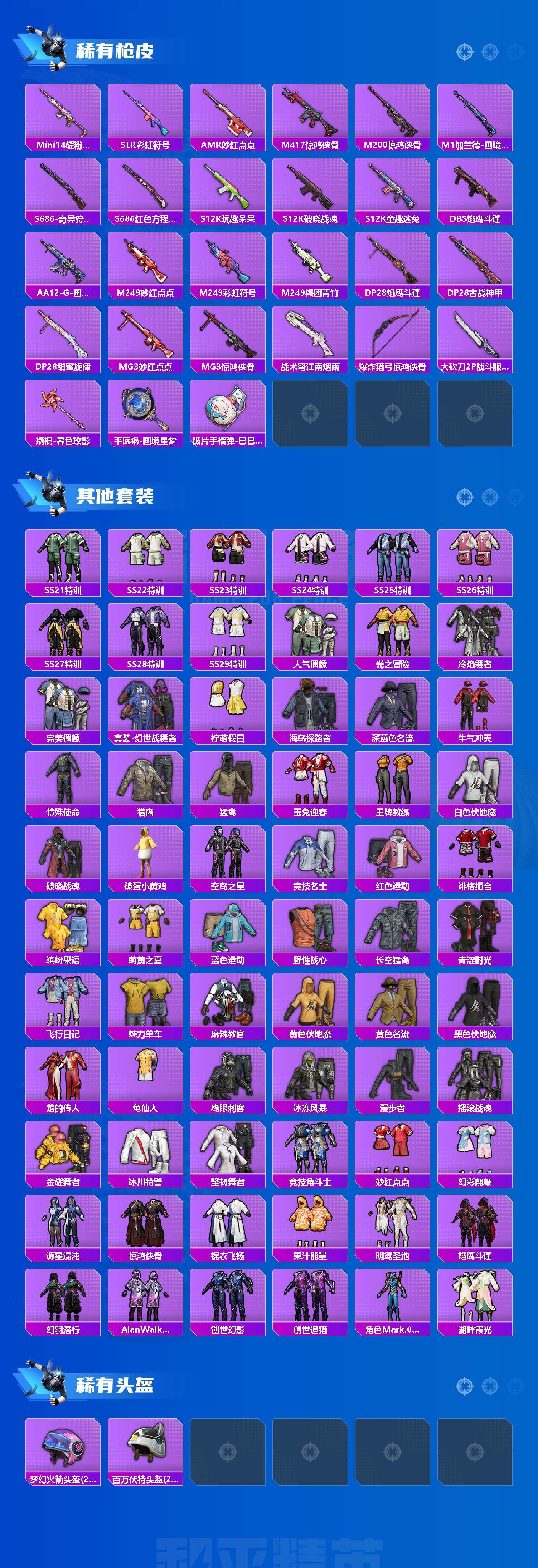 【粉色枪皮等级】:GROZA-镜光银凌(五级),M762-青锋波束(五级),AKS-74U-森灵之息(五级),P90-能量风暴(七级),Kar98K-创世·救赎(五级),Kar98K-巳巳如意(五级),SPAS-12-音爆索尼克(五级)
