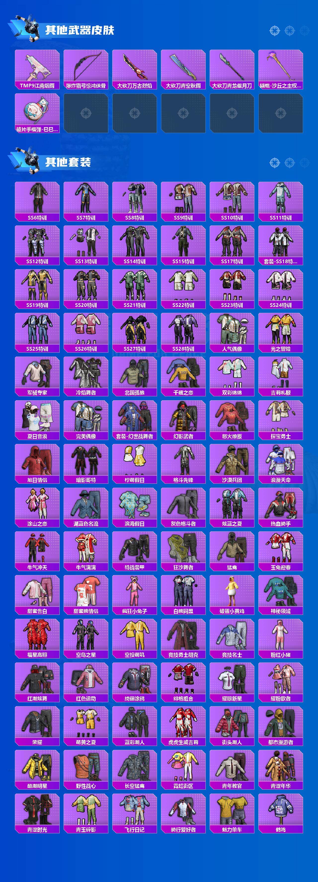 【热门品类】:套装-浪漫天命,套装-都市猎人,套装-深海小丑鱼,套装-小丑鱼,套装-金羽特工,套装-星河浪客,套装-龟仙人,套装-暗影哥特,套装-粉红小猪,大砍刀-青龙偃月刀