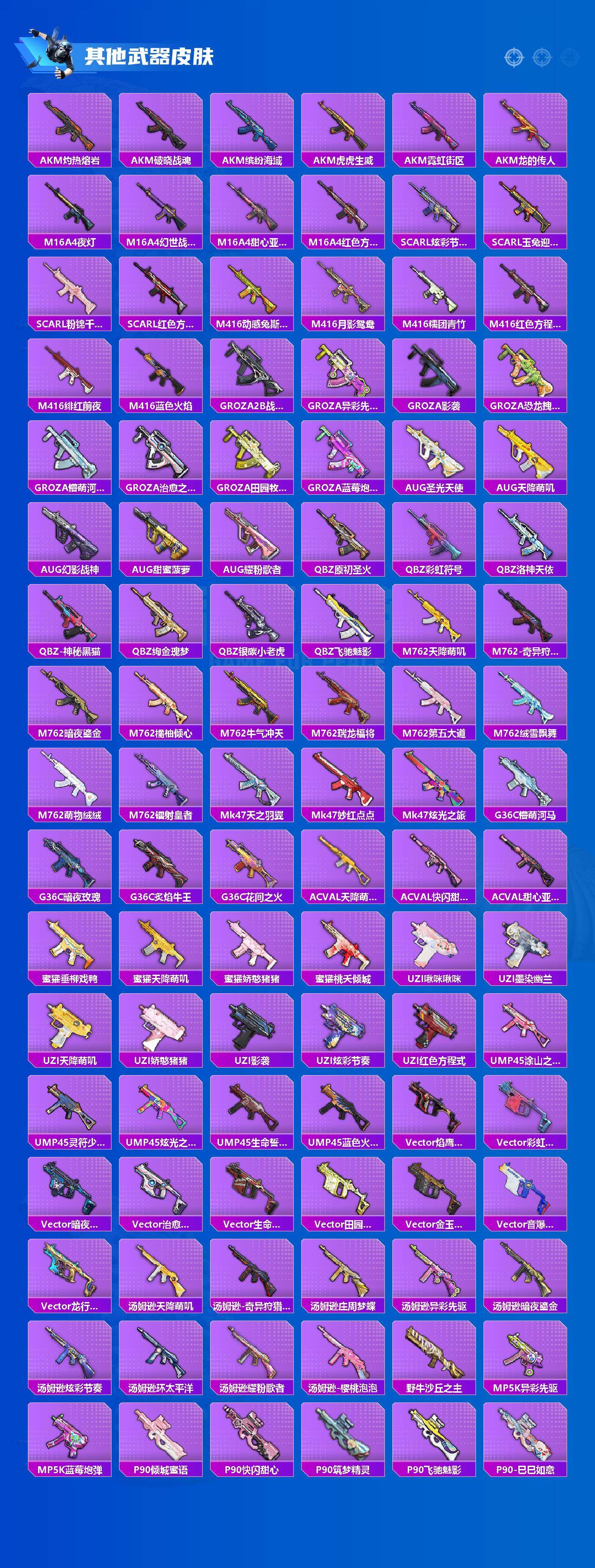 【粉色套装】:粉装-极限特训,粉装-锦绣火鲤,粉装-炙焰红王,粉装-山涧鹿灵,粉装-蓝莓炮弹,粉装-酣梦娃娃,粉装-天之羽翼,粉装-筑