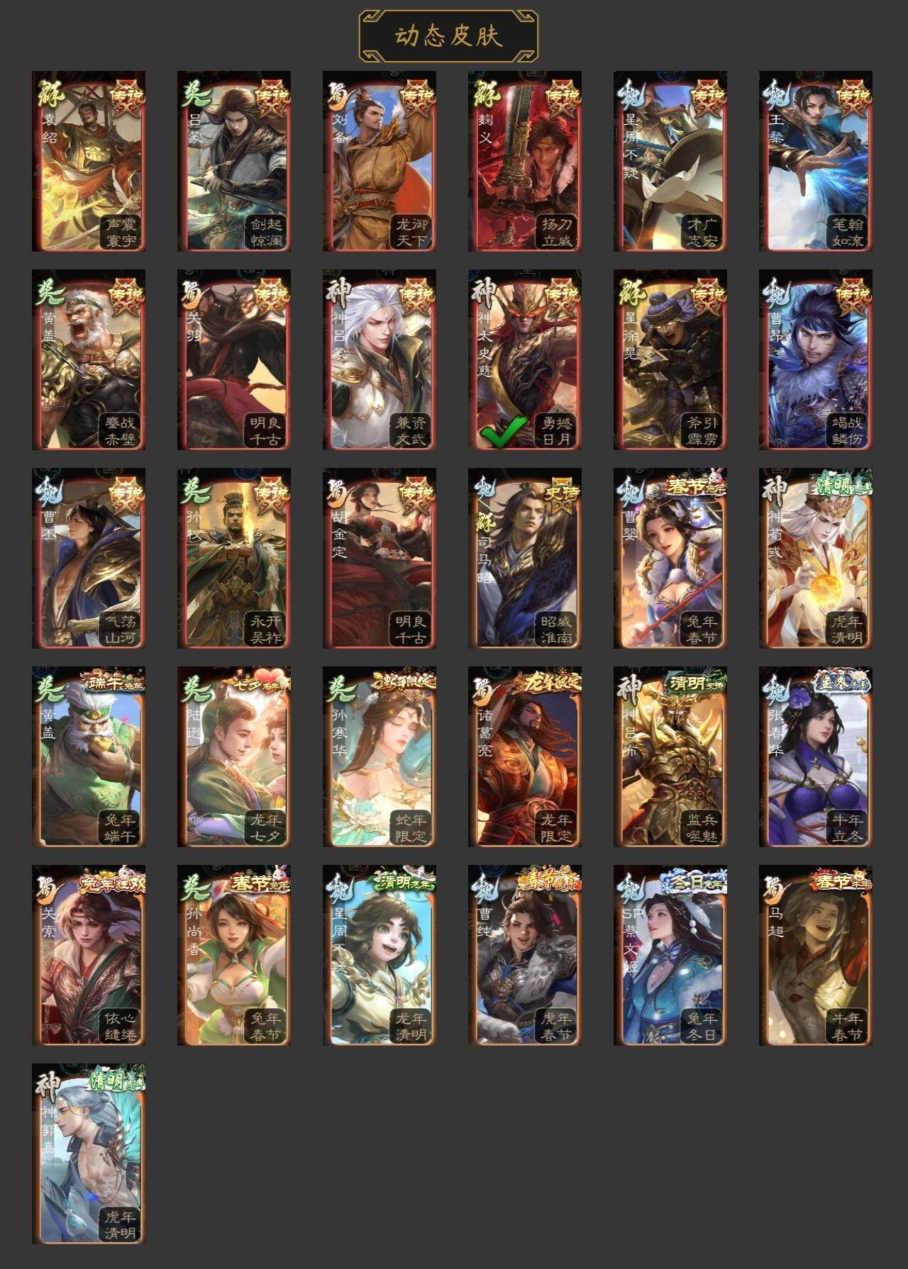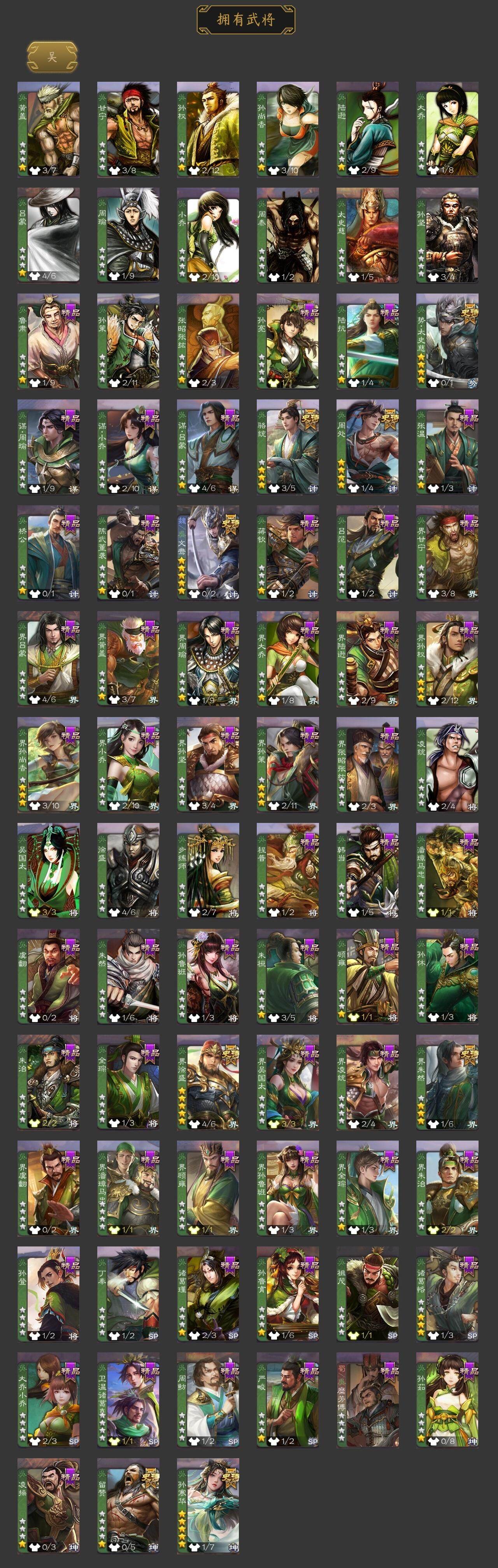 神吕布,神赵云,神司马懿,神张辽,神太史慈,神诸葛亮,星周不疑,杨修,界于禁,界曹真,郝昭,曹婴,曹纯,戏志才,刘晔,程昱,谋马超,诸葛瞻,赵襄,沙摩柯,花鬘,董允,周处,孙寒华,骆统,留赞,界朱然,界徐盛,势太史慈,文鸯,左慈,张让,星黄忠,麹义,庞德公,沮授,界李儒,谋张角,许攸