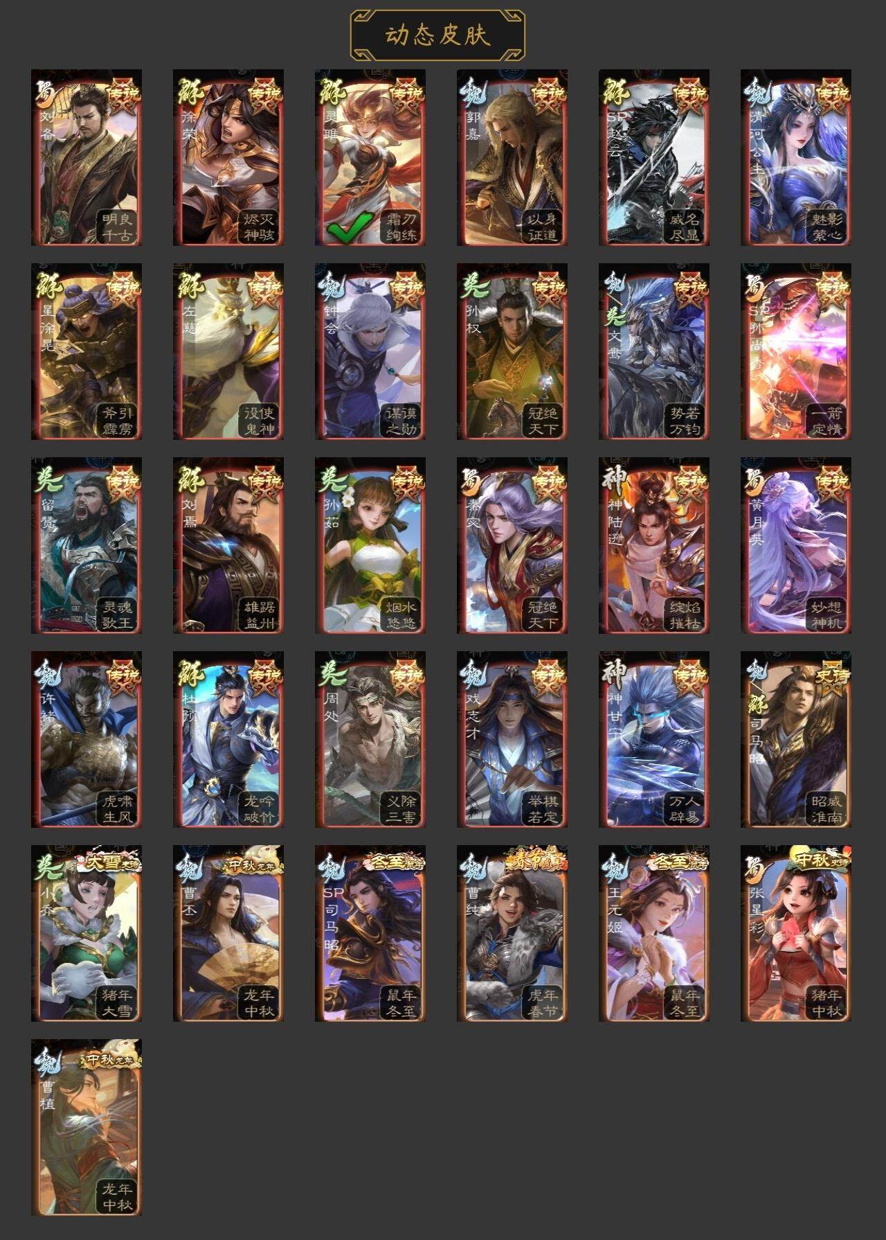 神吕布,神赵云,神陆逊,神甘宁,神张辽,神孙策,神吕蒙,SP司马昭,王粲,文鸯,王元姬,魏-司马昭,马钧,界钟会,界曹真,嵇康,郝昭,曹纯,戏志才,清河公主,谋赵云,周群,赵襄,沙摩柯,花鬘,董允,周处,吴景,留赞,界朱然,界徐盛,贺齐,左慈,郑玄,张让,徐荣,麹义,庞德公,刘璋,