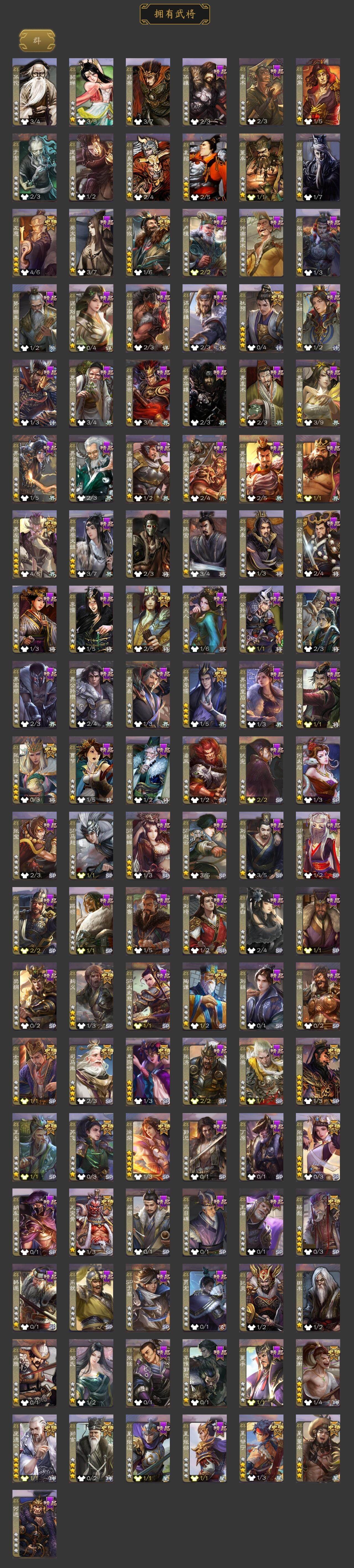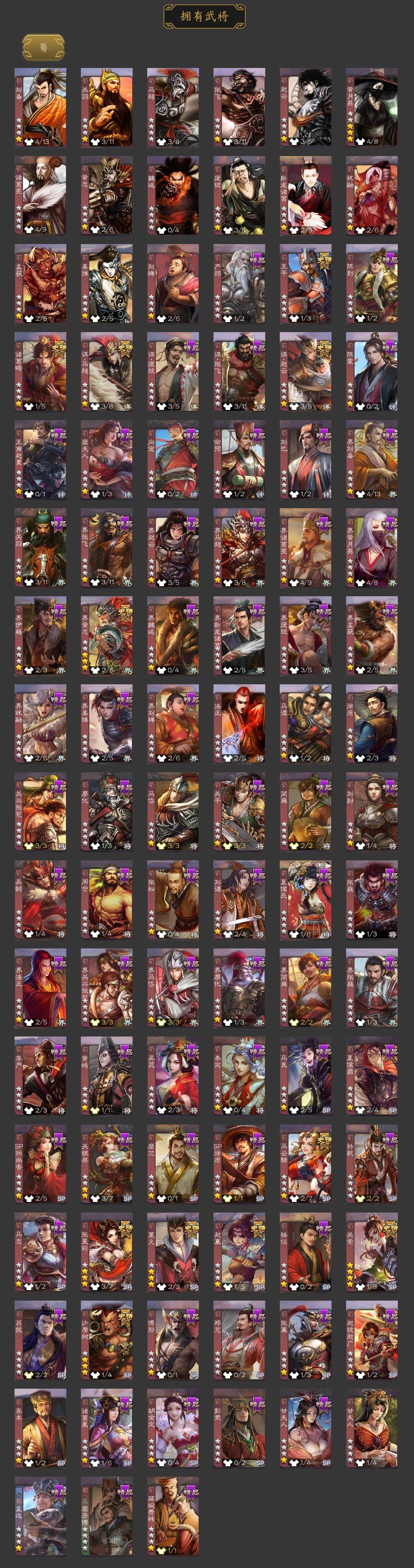 神吕布,神赵云,神陆逊,神刘备,神甘宁,神张辽,神诸葛亮,SP司马昭,杨修,羊徽瑜,王元姬,马钧,界钟会,界于禁,嵇康,郝昭,陈琳,曹婴,曹纯,戏志才,刘晔,清河公主,势辛宪英,程昱,关索,马云騄,谋赵云,谋马超,诸葛瞻,赵襄,张星彩,王平,沙摩柯,界黄忠,董允,周处,孙皓,骆