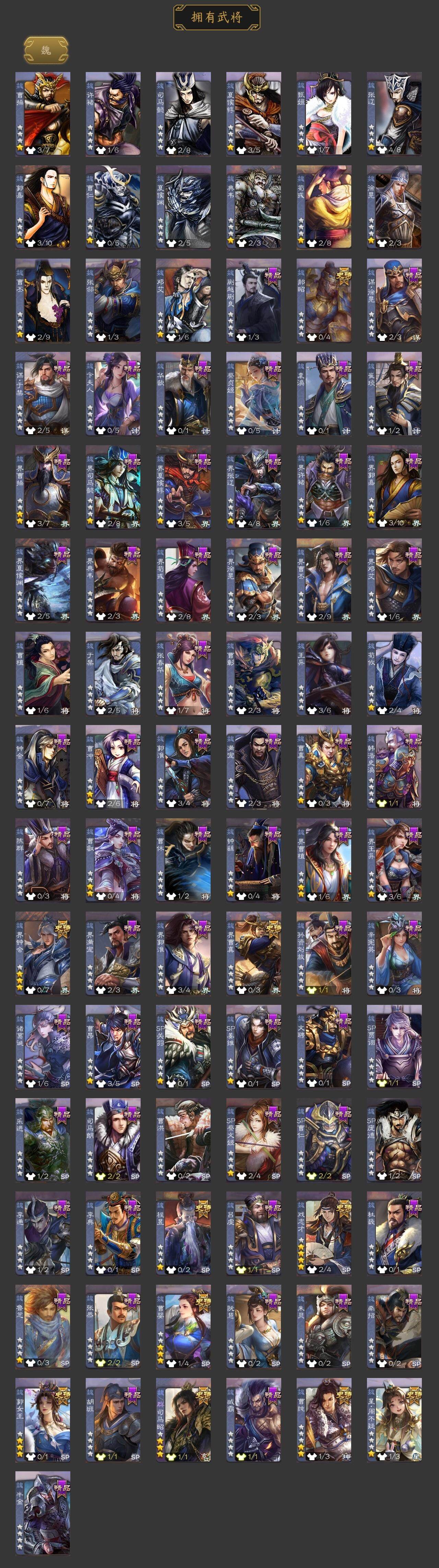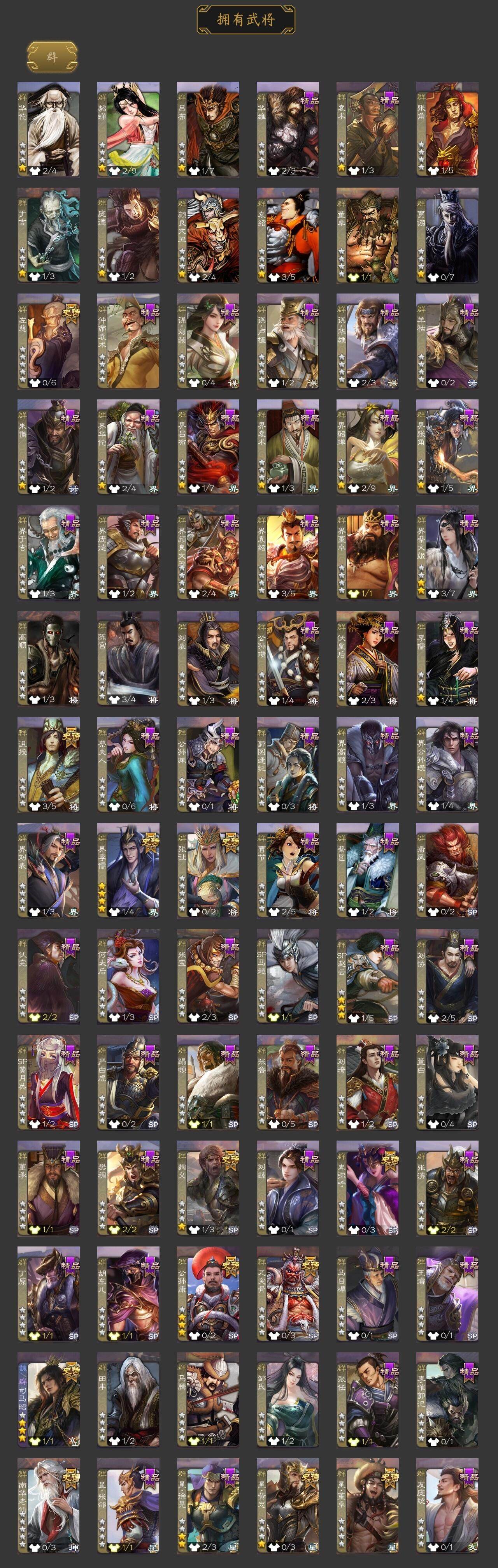 神吕布,神赵云,神甘宁,神孙策,神吕蒙,神周瑜,神诸葛亮,郭女王,星周不疑,魏-司马昭,界钟会,界曹真,郝昭,曹婴,曹纯,戏志才,马云騄,诸葛瞻,王平,沙摩柯,谯周,花鬘,周处,骆统,界朱然,界徐盛,贺齐,左慈,张让,星黄忠,麹义,南华老仙,沮授,界李儒,公孙康,卑弥呼,星董卓,神郭