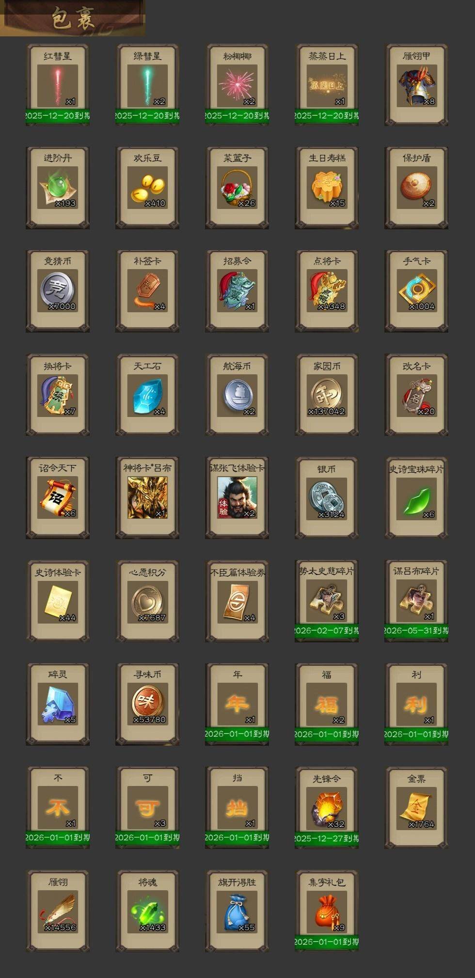 官阶:大将军;VIP等级:VIP14;史诗武将数量:64;动态皮肤数量:27;武将总数:440;史诗宝珠数量:0;将魂数量:1433;神将:8;魏国史诗武将:25;蜀国史诗武将:13;吴国史诗武将:9;群史诗武将:20