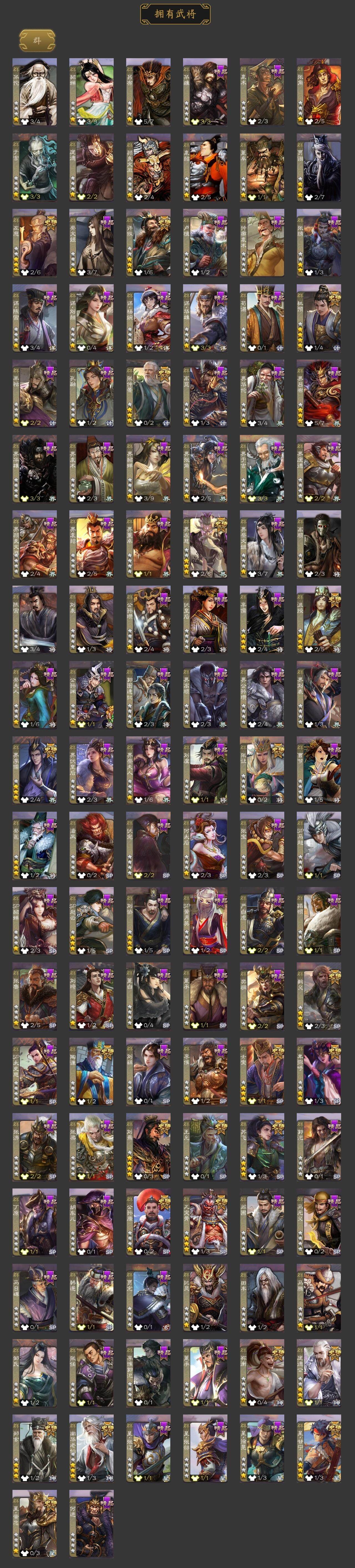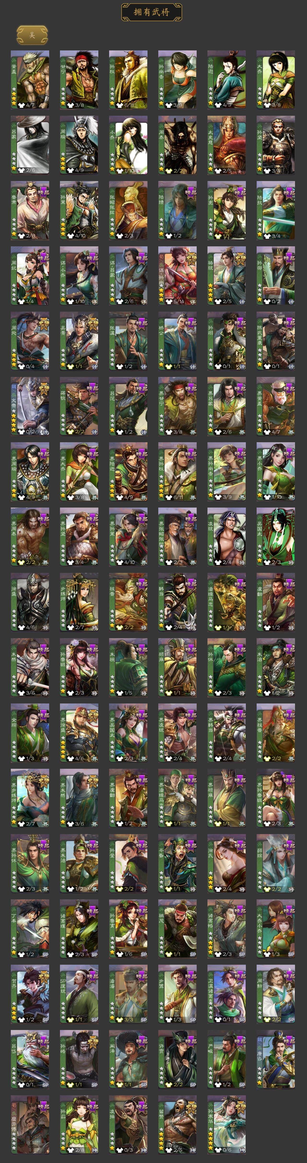 神吕布,神赵云,神陆逊,神刘备,神甘宁,神张辽,神郭嘉,神太史慈,神孙策,神荀彧,神关羽,神吕蒙,神周瑜,神诸葛亮,王粲,杨修,文鸯,王元姬,王凌,马钧,界钟会,界于禁,界曹真,嵇康,郝昭,陈琳,曹婴,曹纯,戏志才,刘晔,关索,马云騄,谋孙尚香,谋黄忠,谋夏侯氏,谋赵云,谋马超