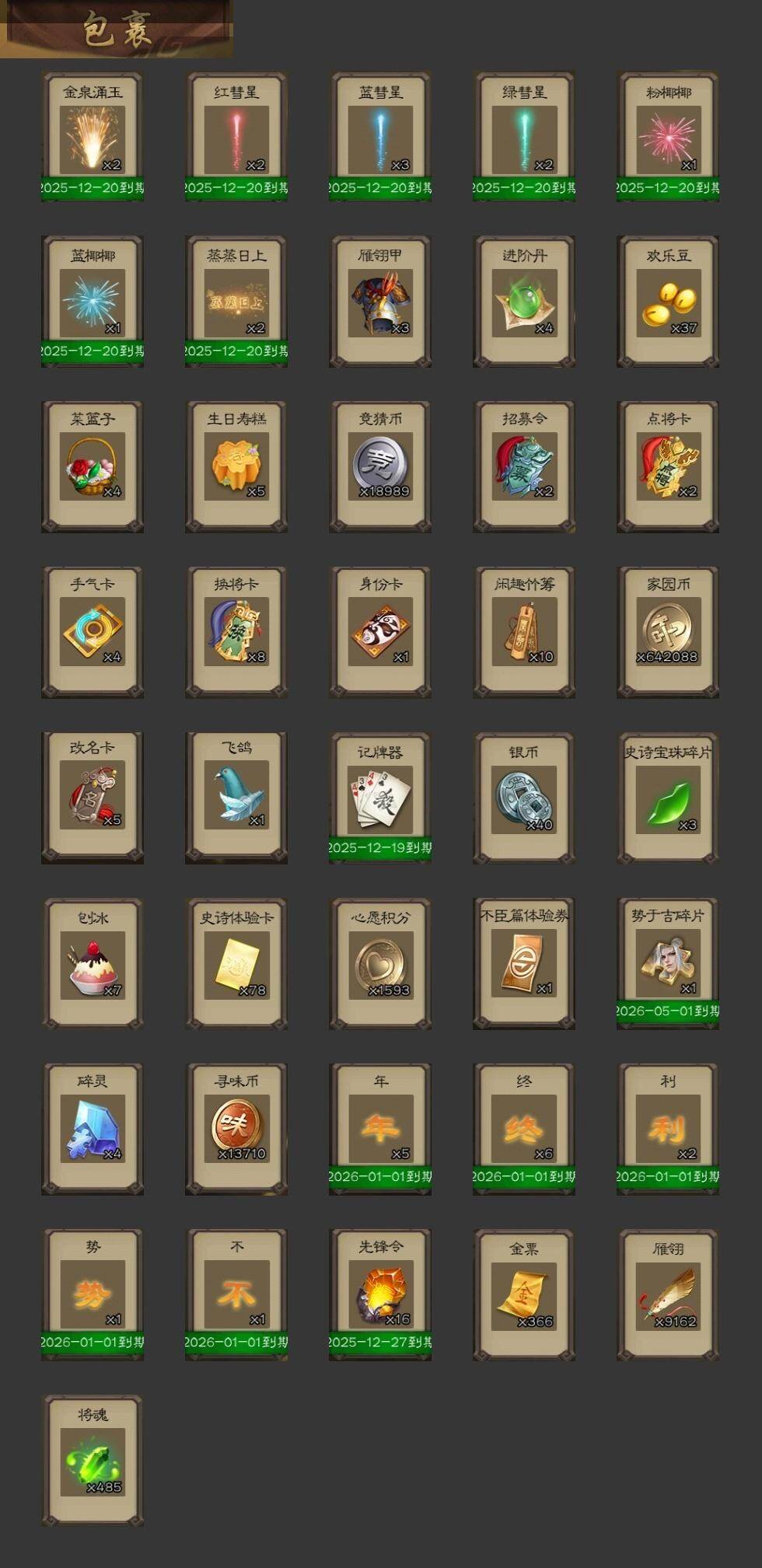 官阶:大将军;VIP等级:VIP15;史诗武将数量:78;动态皮肤数量:49;武将总数:449;史诗宝珠数量:0;将魂数量:485;神将:14;魏国史诗武将:38;蜀国史诗武将:19;吴国史诗武将:10;群史诗武将:23