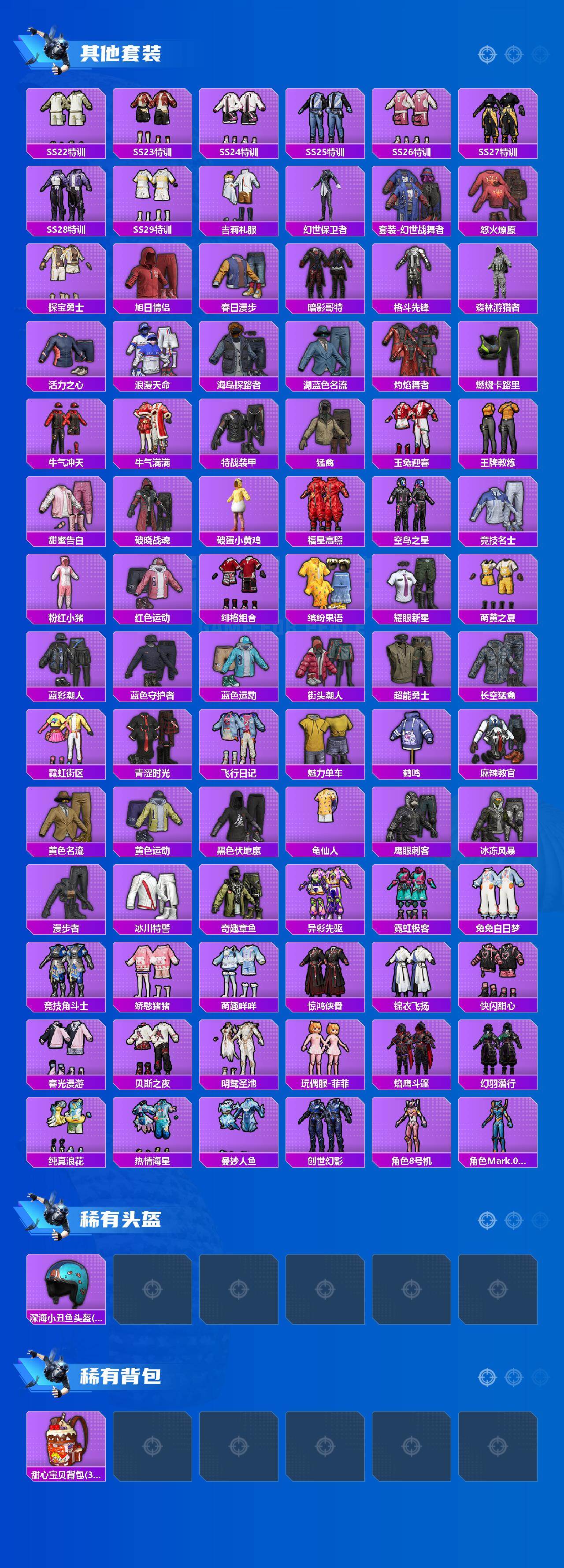 【热门品类】:套装-浪漫天命,套装-龟仙人,套装-暗影哥特,套装-粉红小猪,角色-8号机,角色-Mark.06