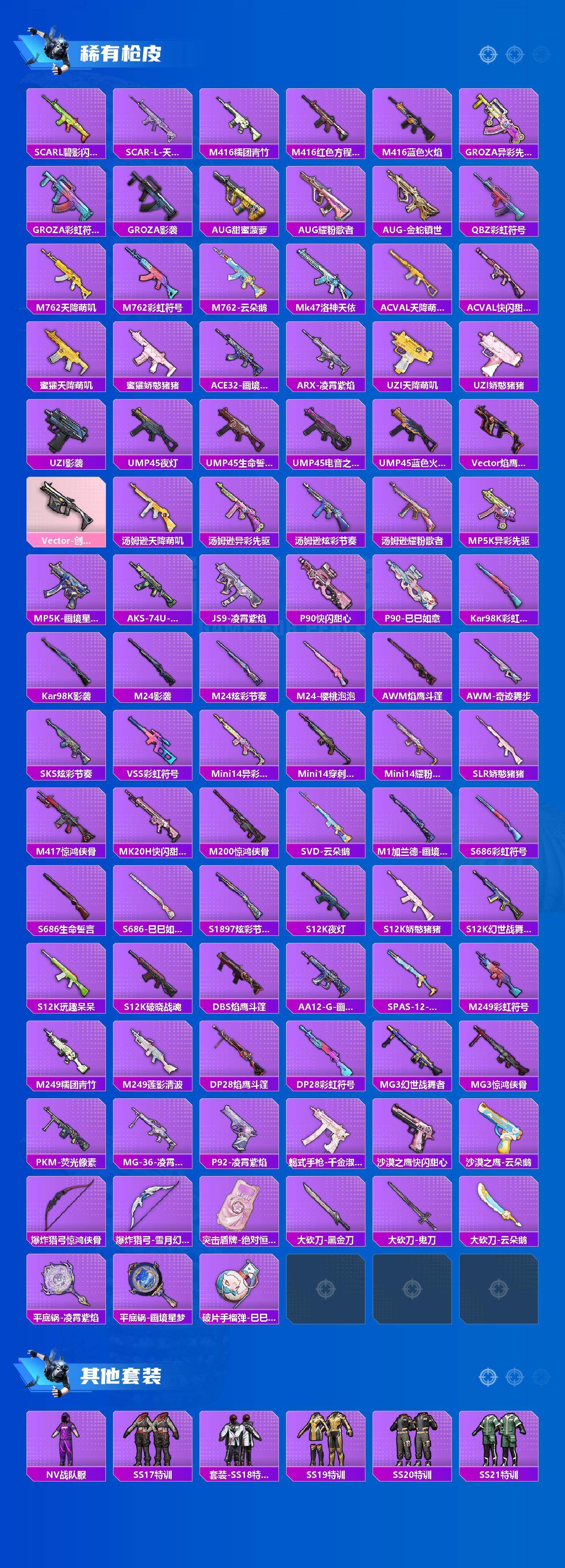 【粉色枪皮等级】:AKM-绿萝繁花(五级),SCAR-L-锦绣绵绵(五级),M416-电玩时刻(五级),GROZA-镜光银凌(五级
