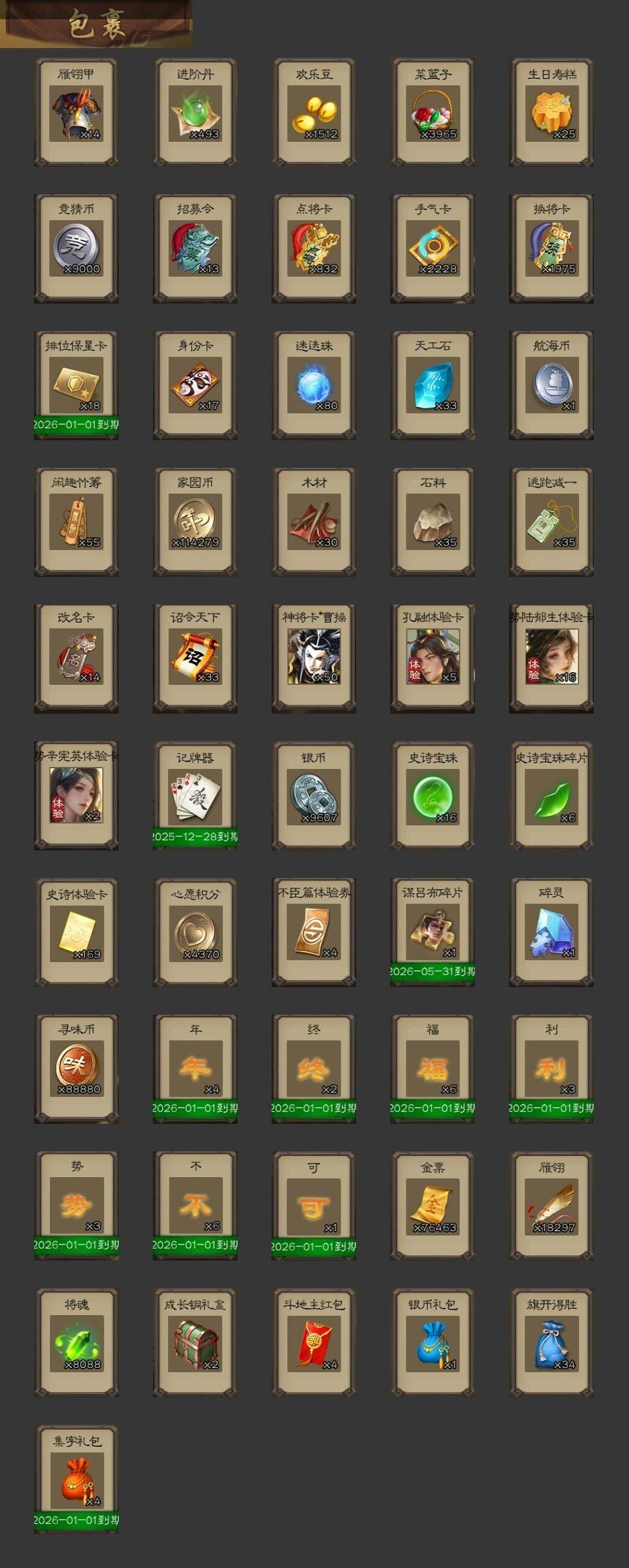 官阶:大将军;VIP等级:VIP11;史诗武将数量:53;动态皮肤数量:39;武将总数:398;史诗宝珠数量:16;将魂数量:8088;神将:9;魏国史诗武将:18;蜀国史诗武将:11;吴国史诗武将:9;群史诗武将:17