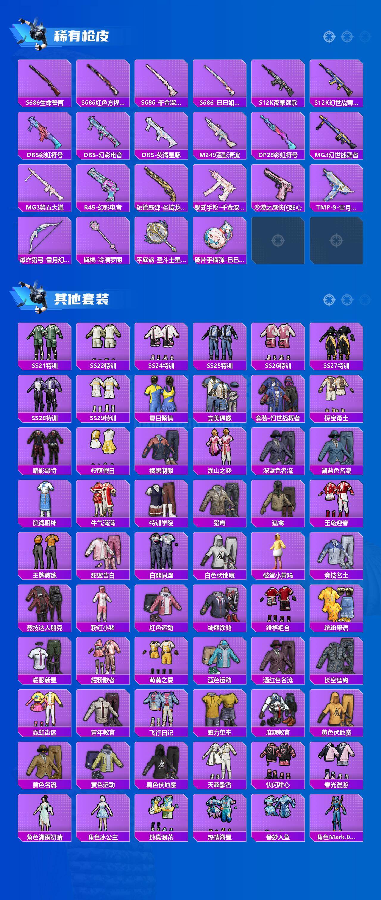 【粉色枪皮等级】:AKM-绿萝繁花(五级),Kar98K-巳巳如意(五级),AMR-智耀战神(五级),DP-28-千金淑猫(六级),DP-28-豹影疾电(五级)