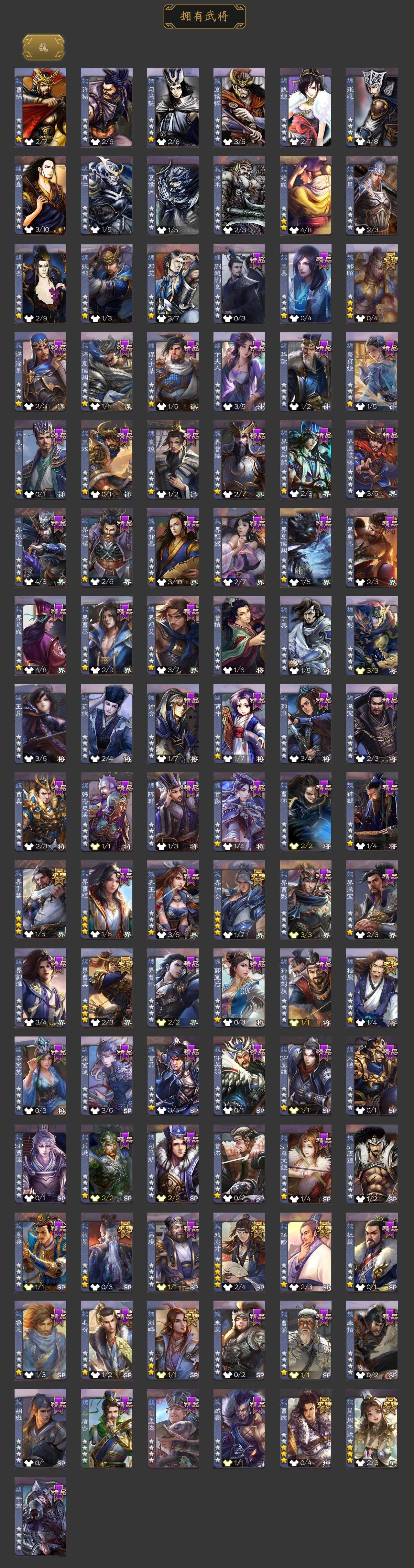 神吕布,神赵云,神陆逊,神太史慈,神诸葛亮,星周不疑,杨修,界钟会,界于禁,界曹真,嵇康,郝昭,曹纯,戏志才,刘晔,程昱,关索,谋诸葛亮,谋赵云,谋马超,周群,赵襄,张星彩,王平,沙摩柯,谯周,界黄忠,花鬘,董允,骆统,界徐盛,界步练师,势陆郁生,裴秀,左慈,郑玄,星黄忠,苏飞,