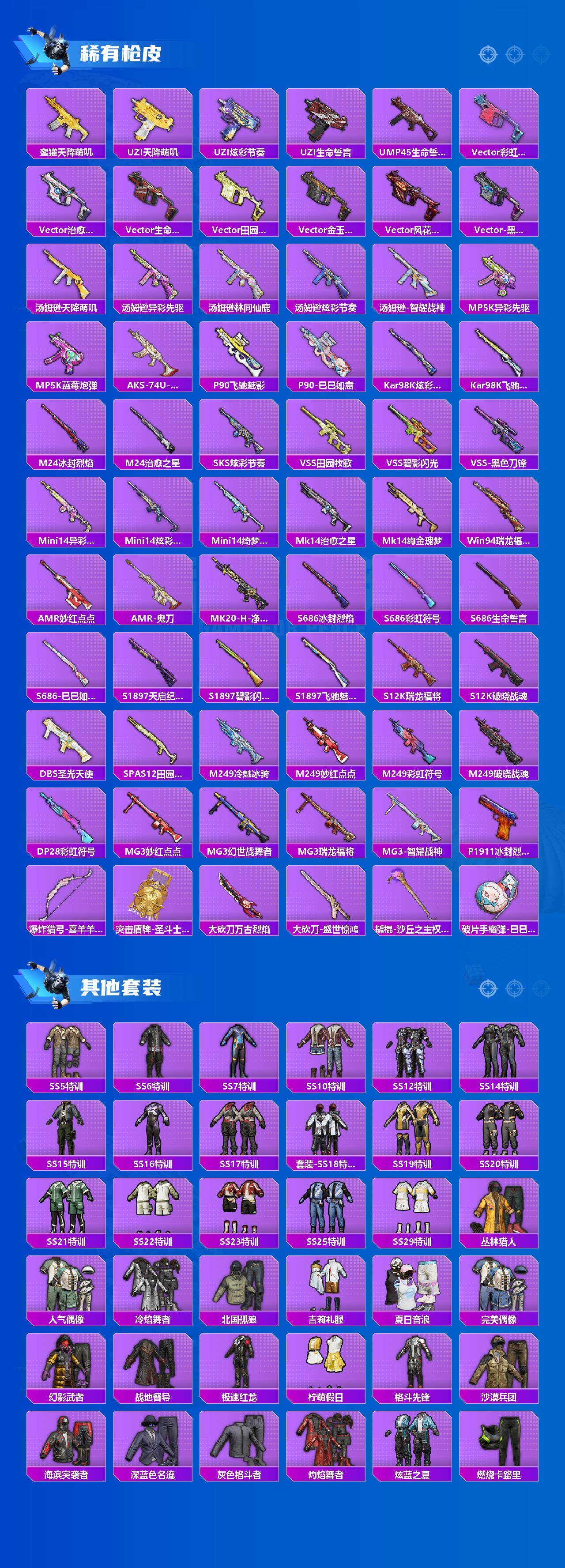 【粉色枪皮等级】:AUG-暖羊咩咩(五级),M762-冷魅冰骑(七级),Kar98K-圣光天使(七级),Kar98K-巳巳如意(五级),