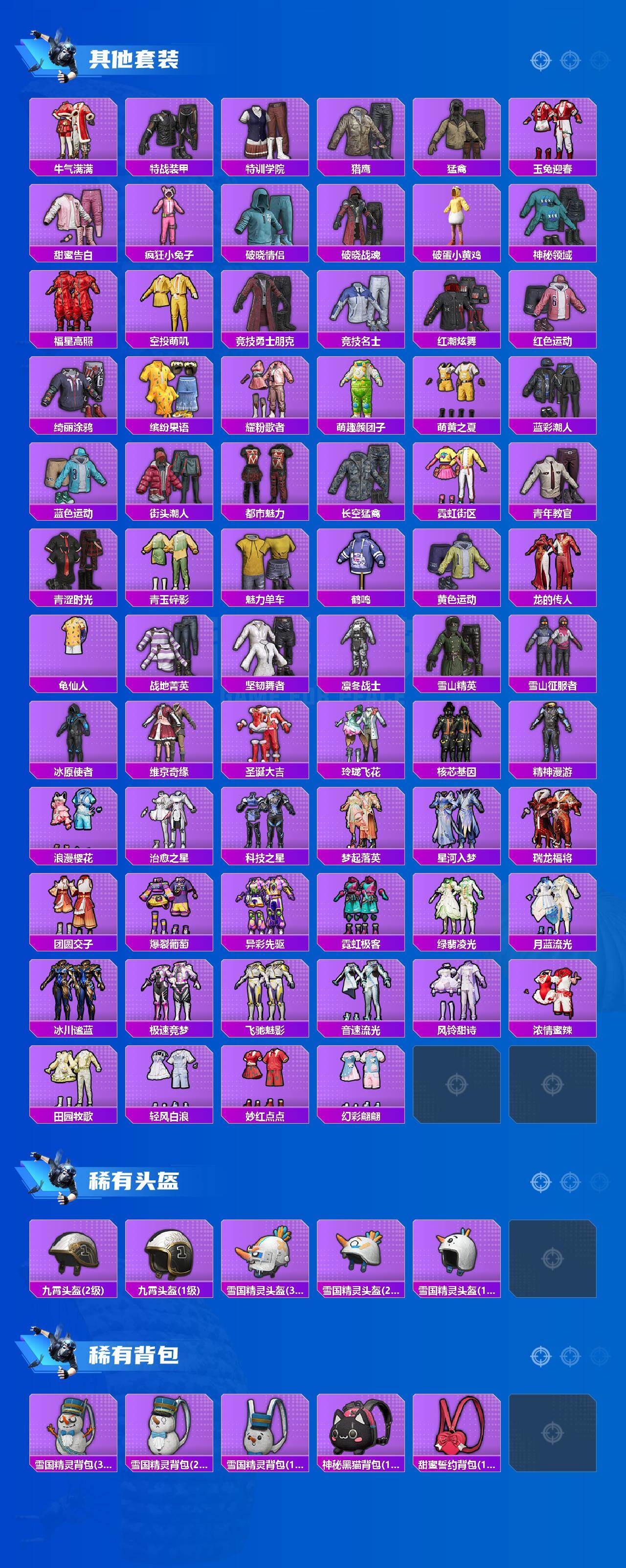 【粉色套装】:粉装-守护骑士,粉装-幻情紫藤,粉装-橘柚倾心,粉装-冷魅冰骑,粉装-赤焰黑爵,粉装-紫电风暴,粉装-圣光天使,粉装-霞光圣骑,粉装-寒光使者,角色-星云暗核,角色-智耀战神