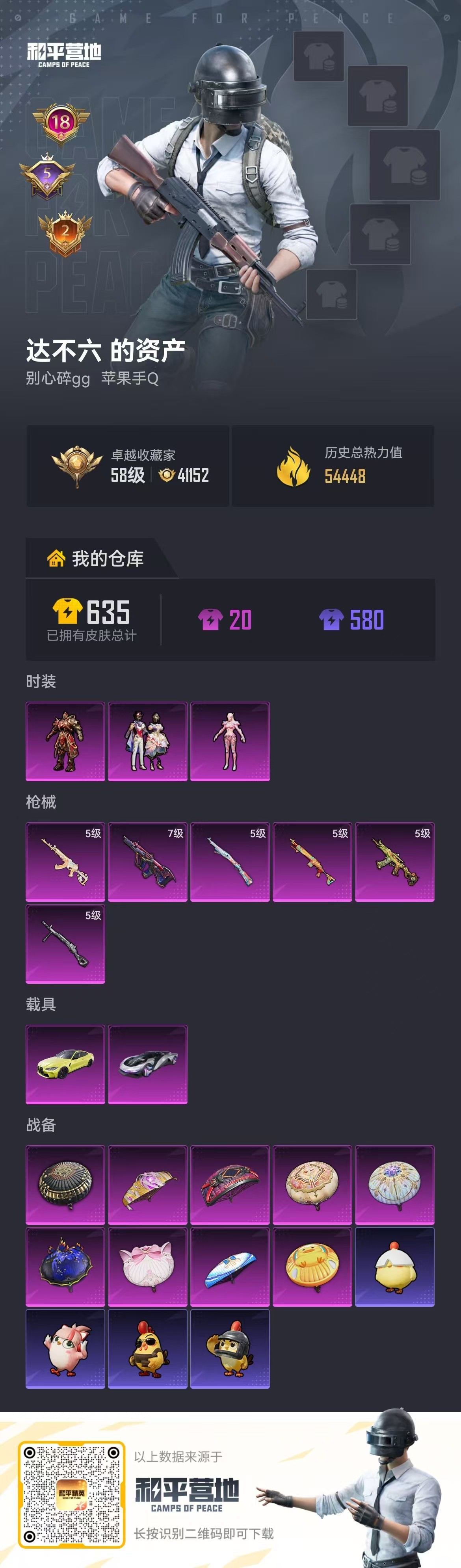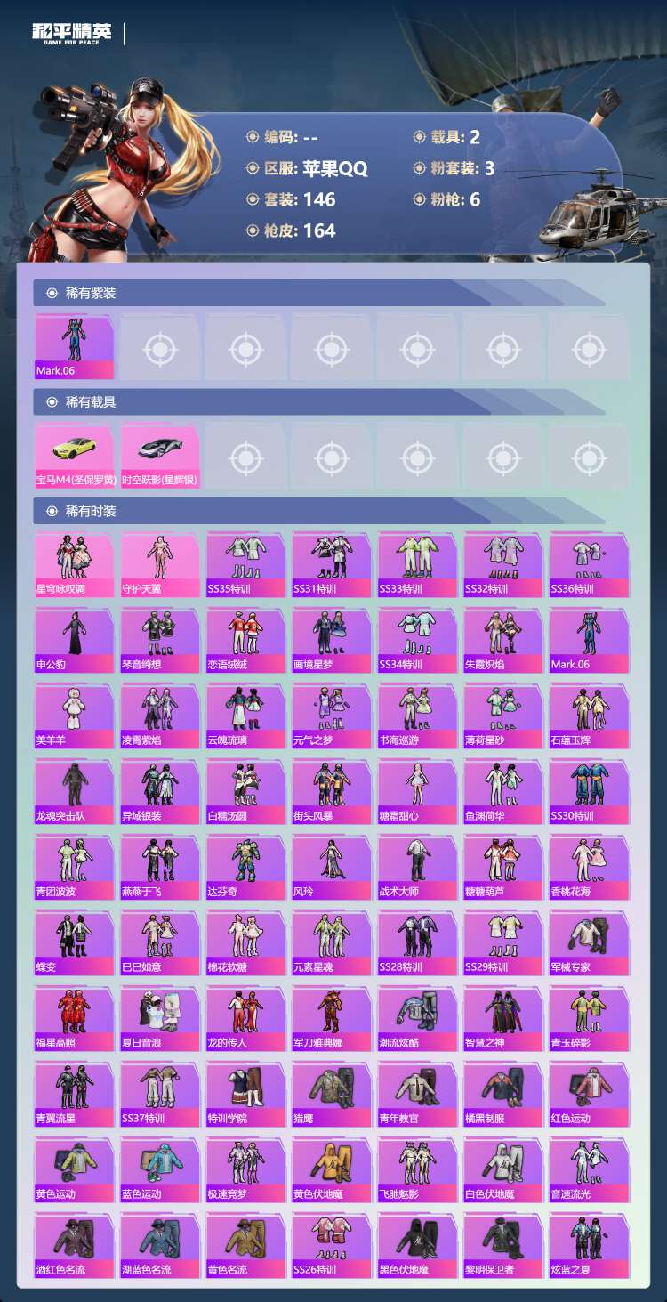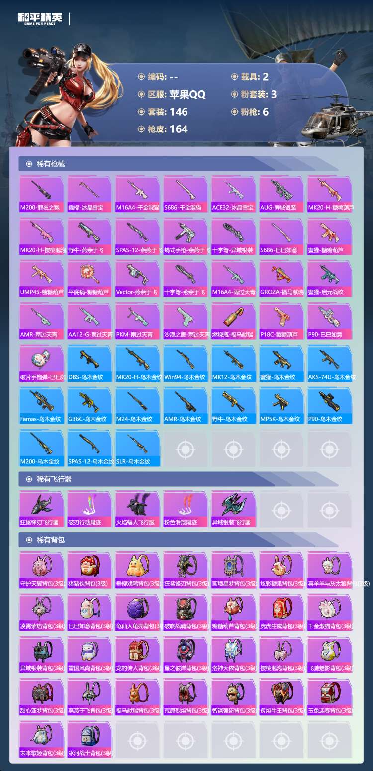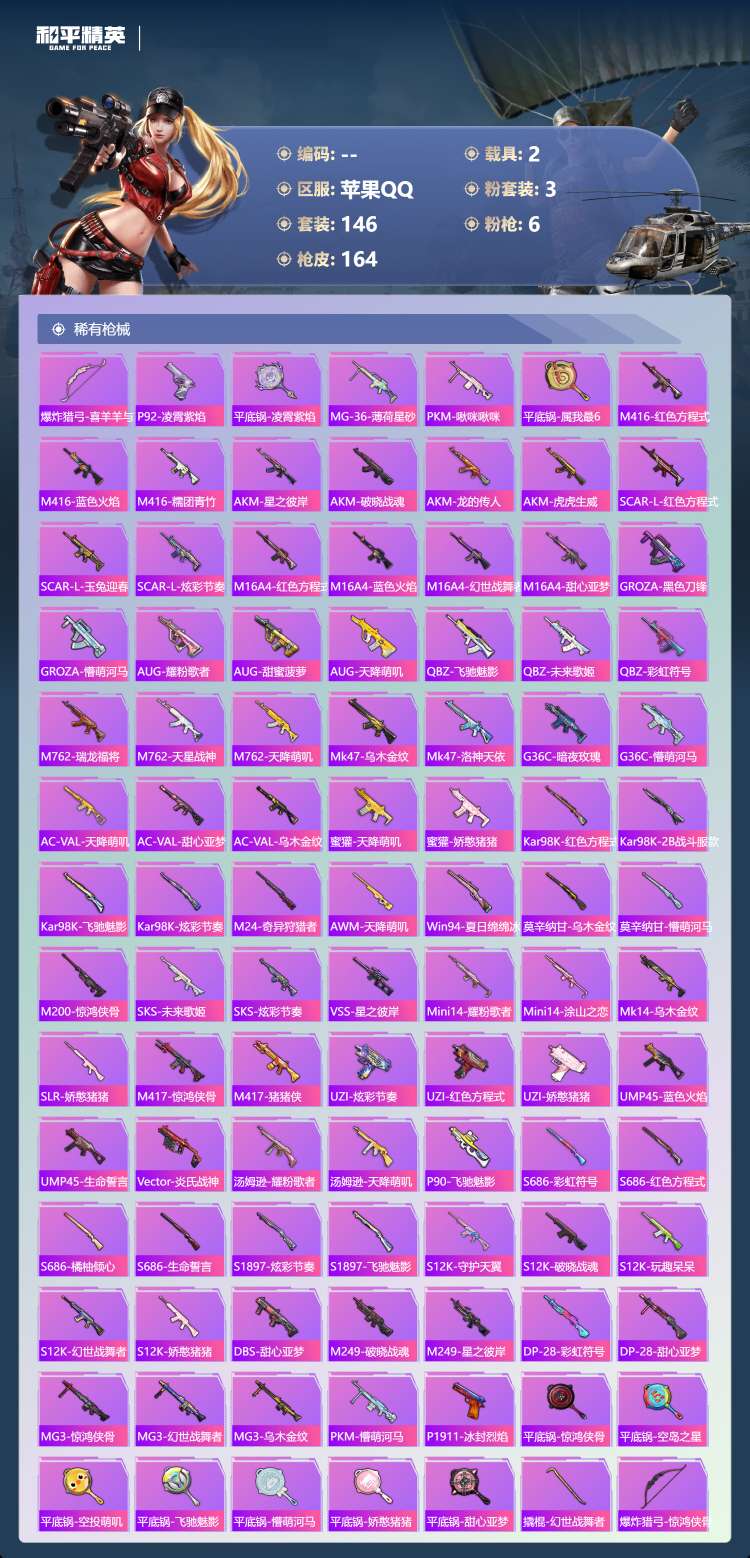 hs63460 苹果手Q-18王牌印记-3粉装-6特效枪-2载具-54508热力值-146套装-16