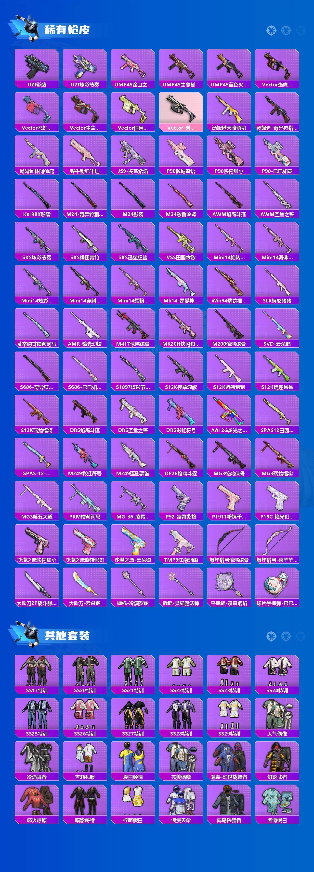 【粉色枪皮等级】:AKM-绿萝繁花(五级),SCAR-L-青春物语(七级),SCAR-L-锦绣绵绵(五级),M416-心之恋语(七级),蜜獾-