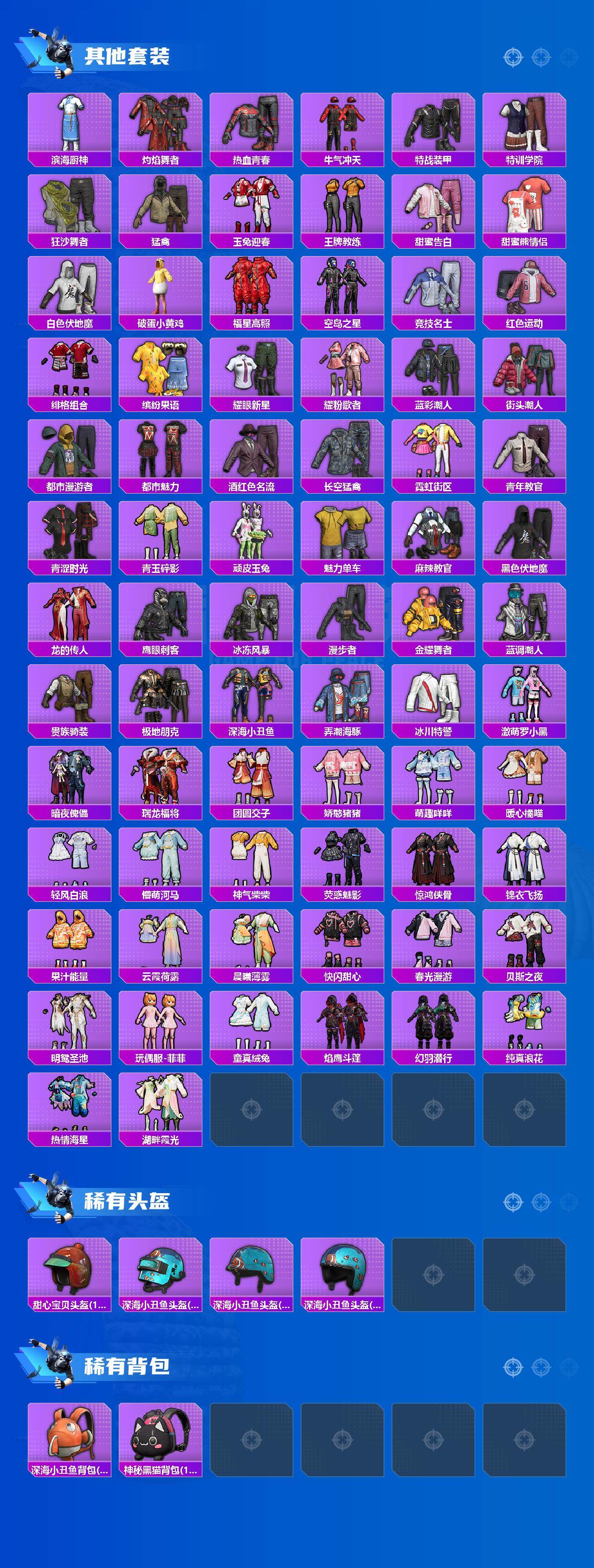 【粉色套装】:粉装-金属狂野,粉装-智能音符,粉装-放客神游,粉装-岚岚物语,角色-呆萌星弥,角色-小可学妹,粉装-莲影清波,粉装-蜜语绒猫,角色-狂魅哈莉