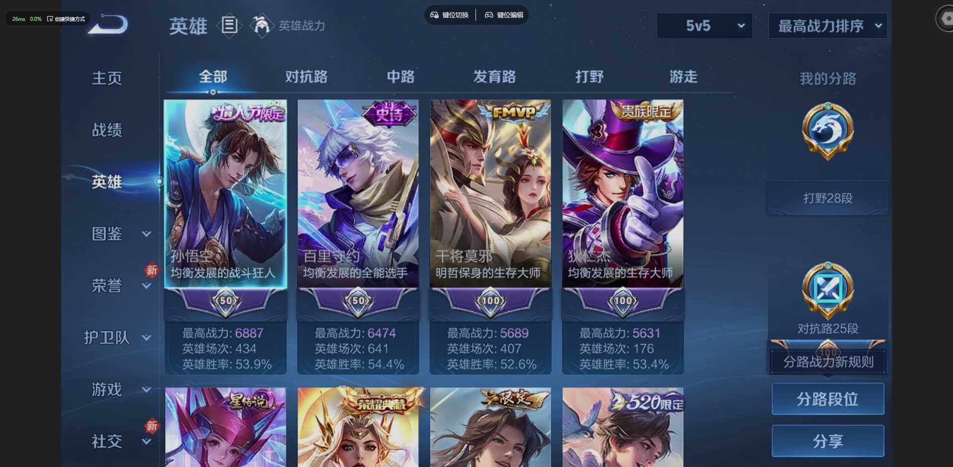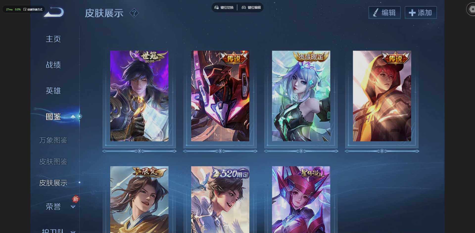 实名: 可修改 贵族等级: V8 英雄数: 127 皮肤数: 308 荣耀水晶