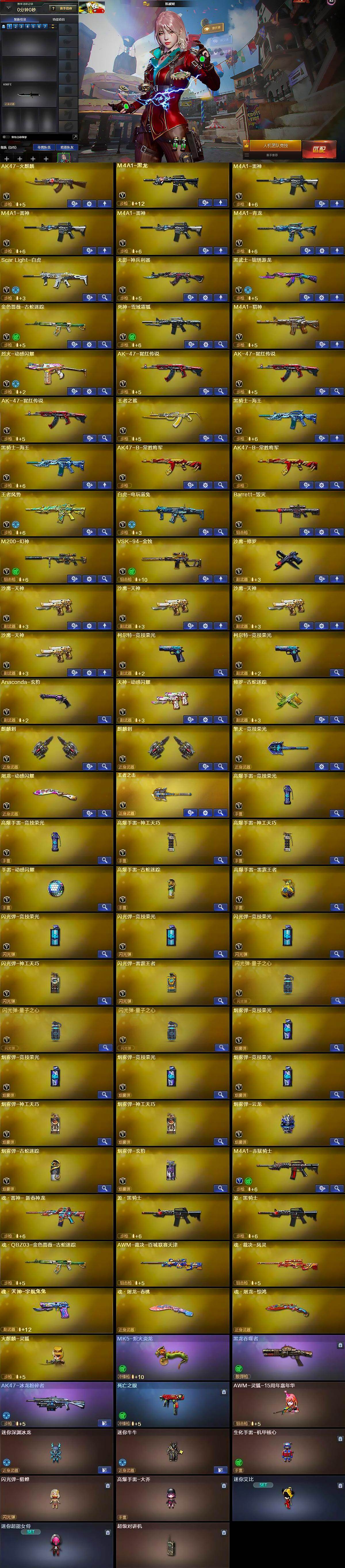 【热门武器】:Scar Light-白虎,M4A1-青龙,M200-幻神,金色蔷薇-古蛇迷踪,修罗-古蛇迷踪,死亡之眼,白虎-电玩蓝兔,5-炽火炎龙,降世魔童,沙鹰-修罗