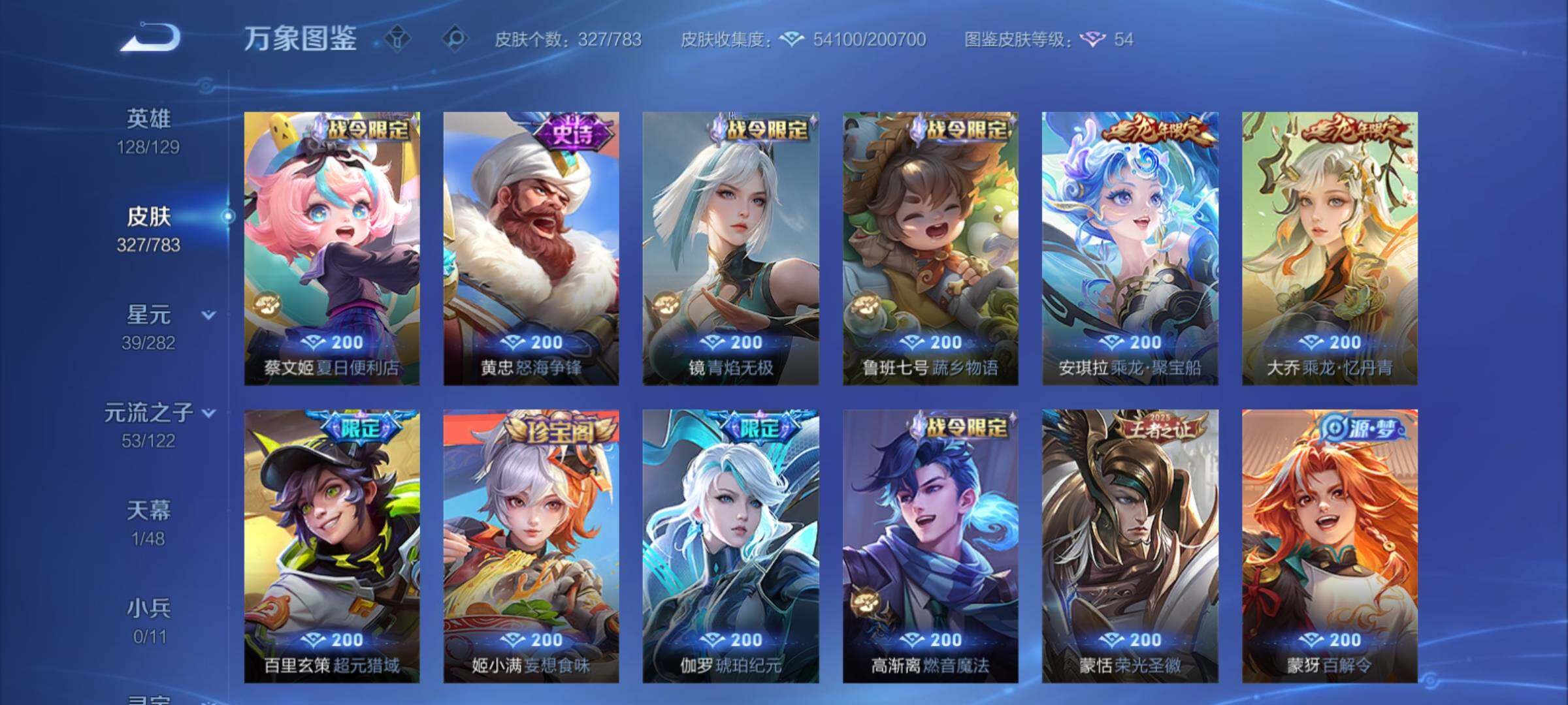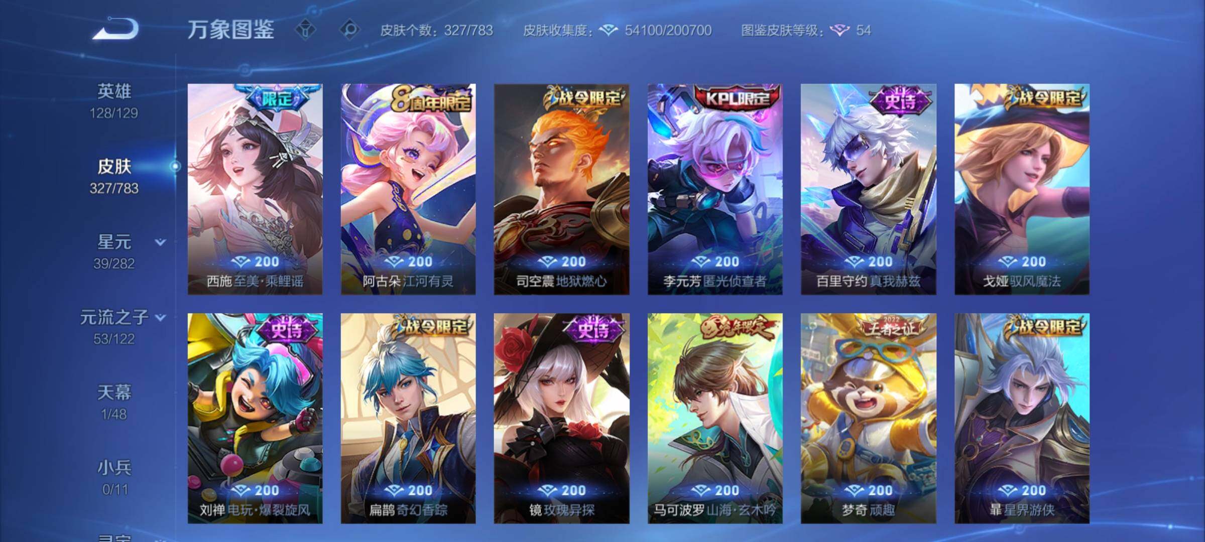 V9-327皮肤-3典藏皮肤-3无双-3珍品传说-22传说-91史诗