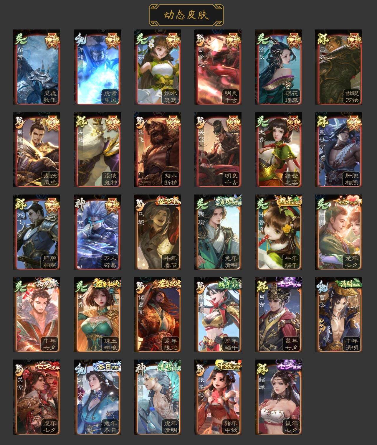 神赵云,神甘宁,神郭嘉,神太史慈,神关羽,神吕蒙,神周瑜,神诸葛亮,王粲,杨修,文鸯,王凌,马钧,界钟会,界于禁,界曹真,嵇康,陈琳,曹纯,戏志才,刘晔,关索,马云騄,谋黄忠,谋赵云,诸葛瞻,周群,赵襄,张星彩,王平,沙摩柯,谯周,花鬘,周处,吴景,骆统,留赞,界朱然,界徐盛,界步