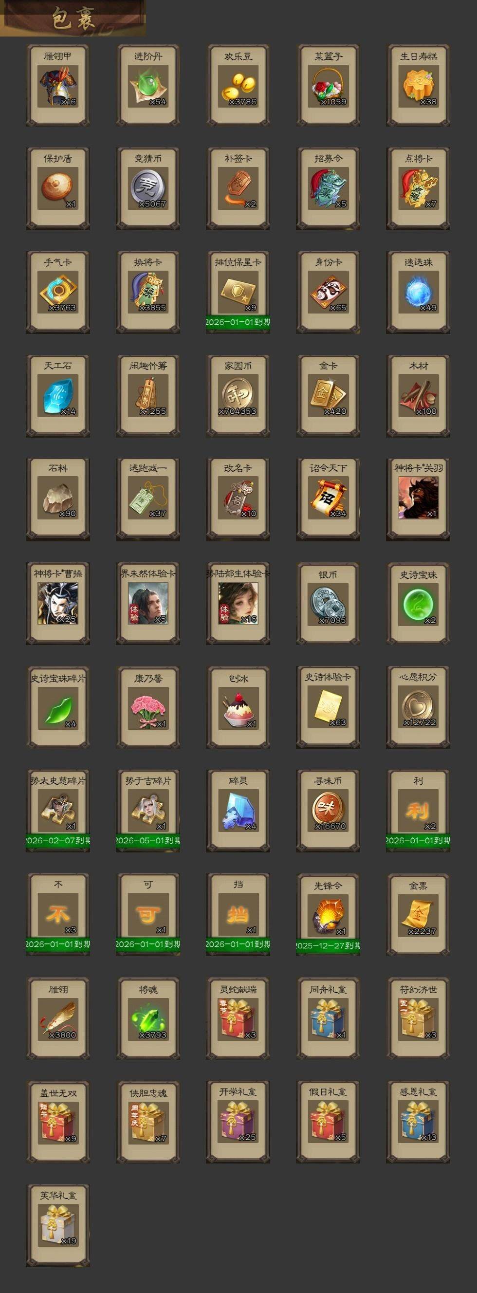 官阶:大将军;VIP等级:VIP11;史诗武将数量:67;动态皮肤数量:56;武将总数:441;史诗宝珠数量:2;将魂数量:3793;神将:9;魏国史诗武将:32;蜀国史诗武将:12;吴国史诗武将:10;群史诗武将:25