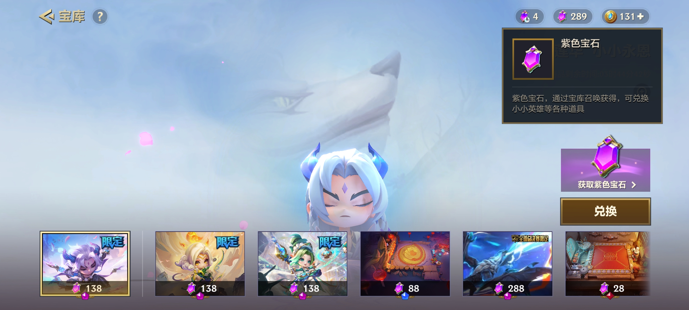 差一些可以兑换大大英雄,有289个紫色兑换石,可以兑换魔典双城传说2的小小英雄