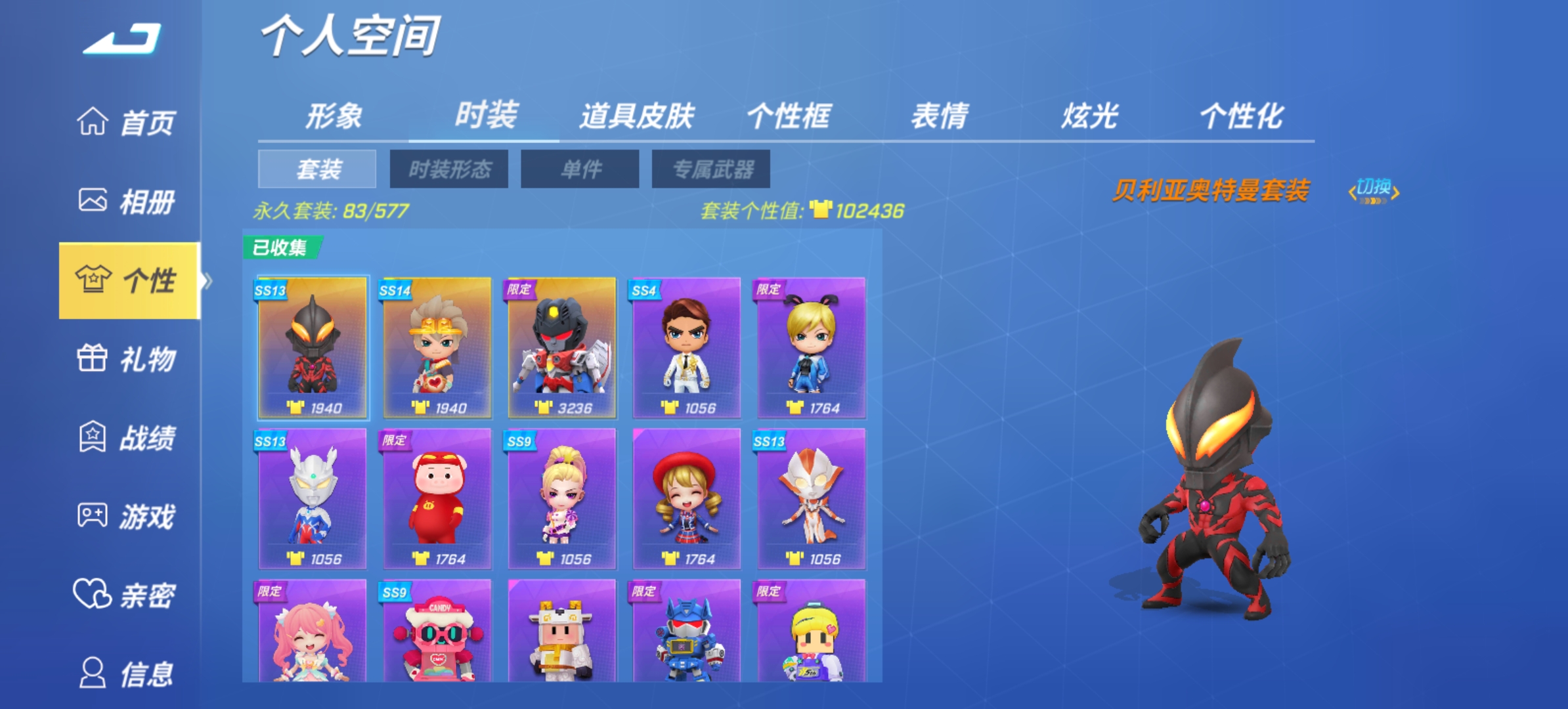 退游了,大号有奥特曼的全部角色皮肤,还有猪猪侠,还有五六个小号,直接跳过新手期,可以用来做任务