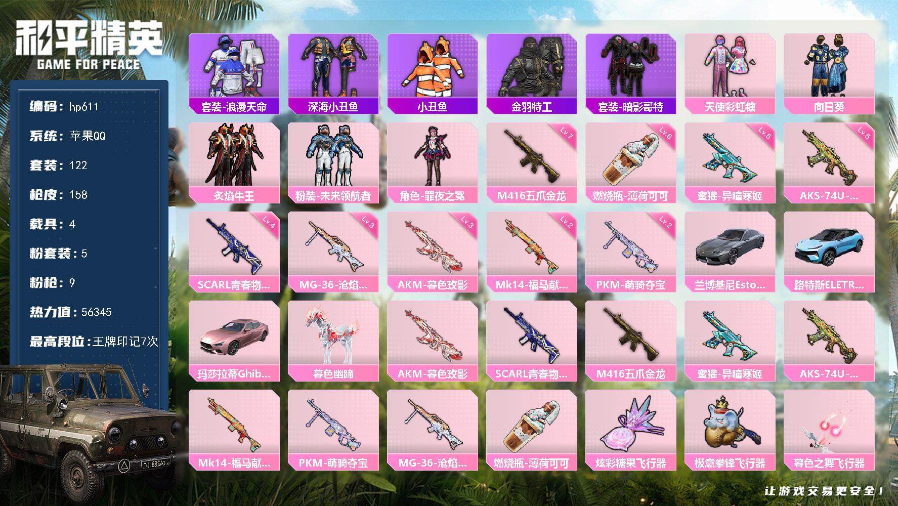 苹果 手Q-5粉装-9特效枪-4载具-4粉色飞行器-5634