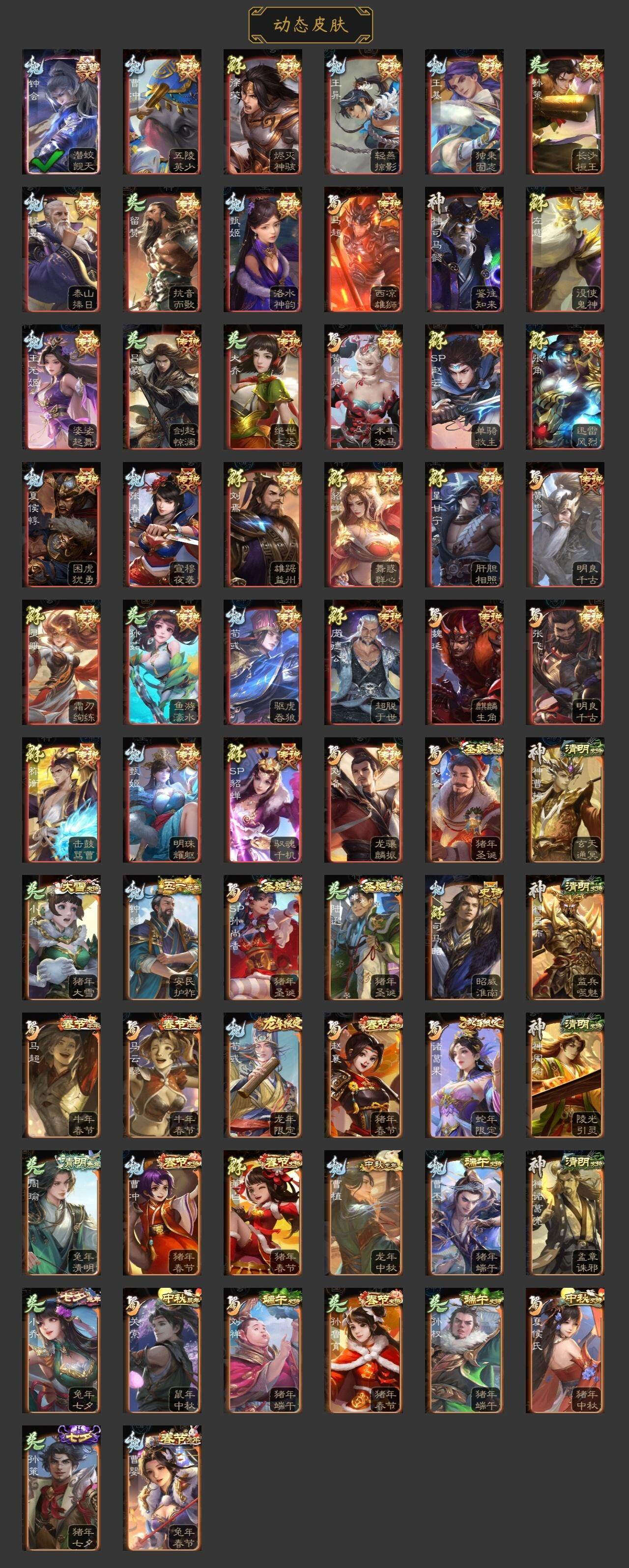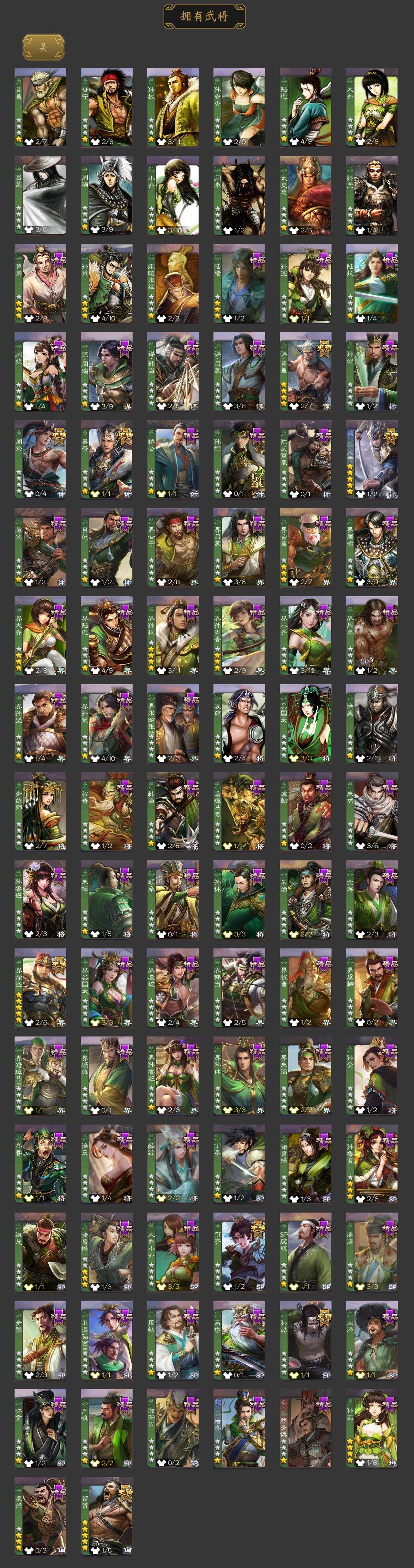 神曹操,神吕布,神赵云,神司马懿,神陆逊,神刘备,神张辽,神关羽,神吕蒙,神周瑜,神诸葛亮,SP司马昭,杨修,文鸯,王元姬,王朗,魏-司马昭,马钧,界钟会,界于禁,嵇康,陈琳,曹婴,曹纯,戏志才,刘晔,谋夏侯惇,关索,马云騄,谋黄忠,谋赵云,周群,赵襄,张星彩,王平,沙摩柯,谯