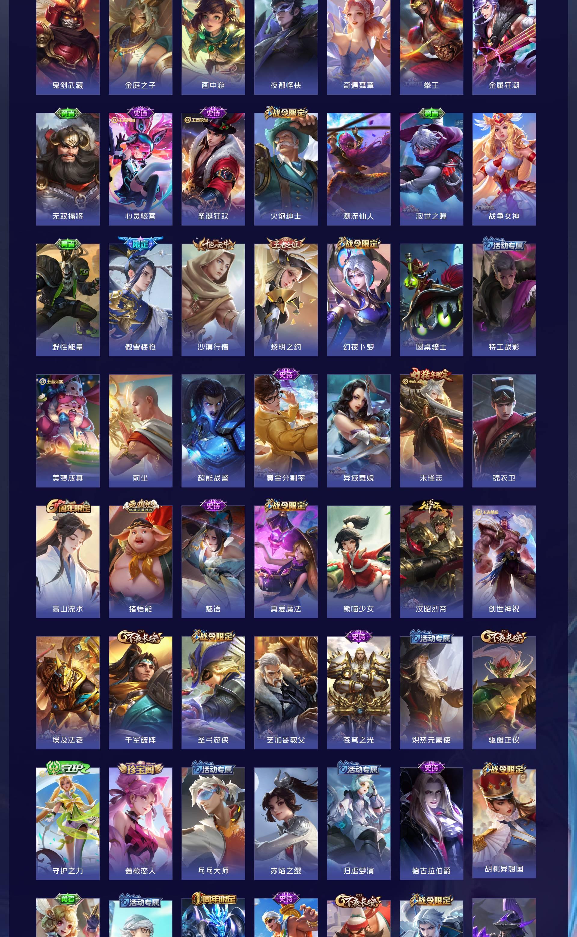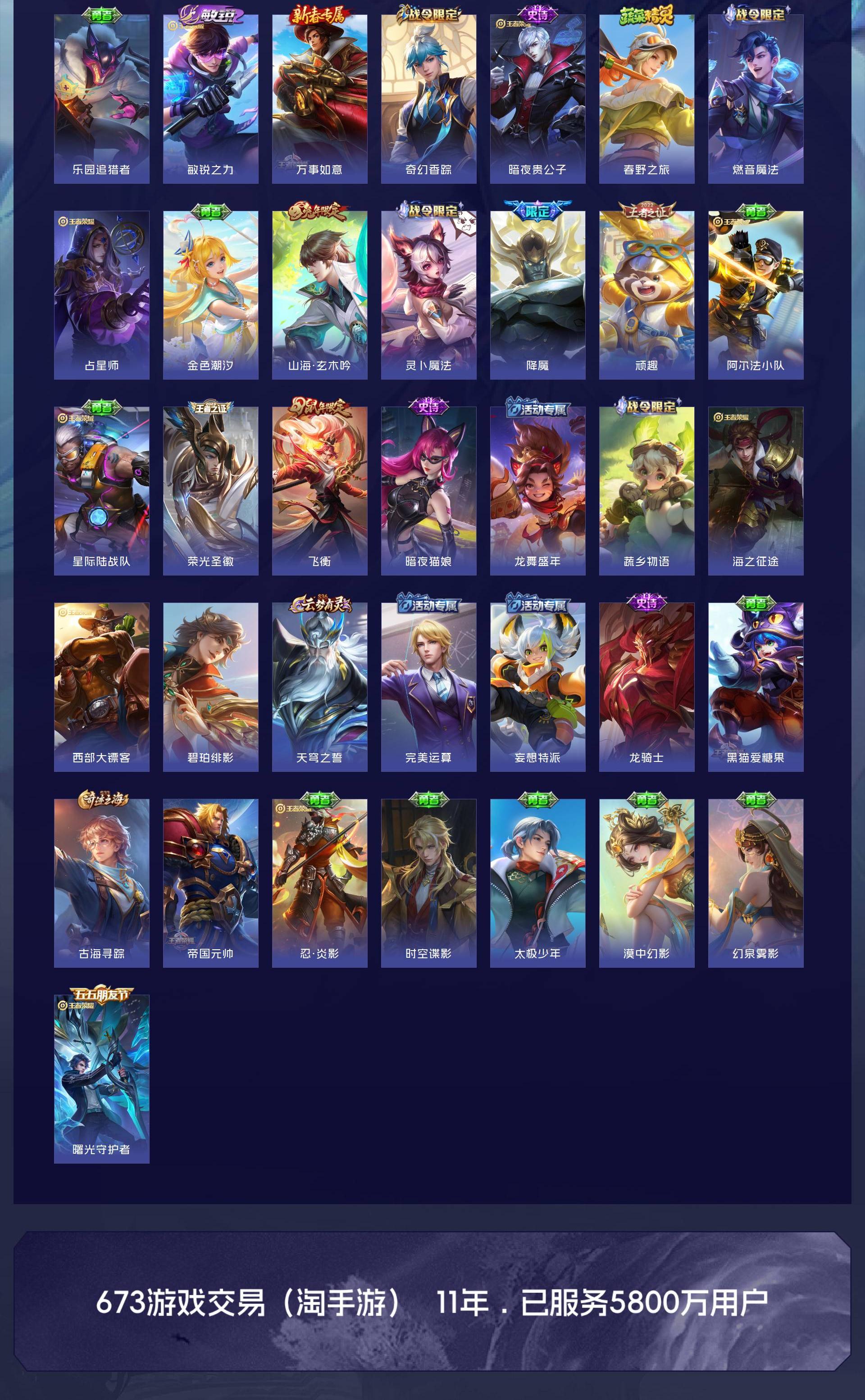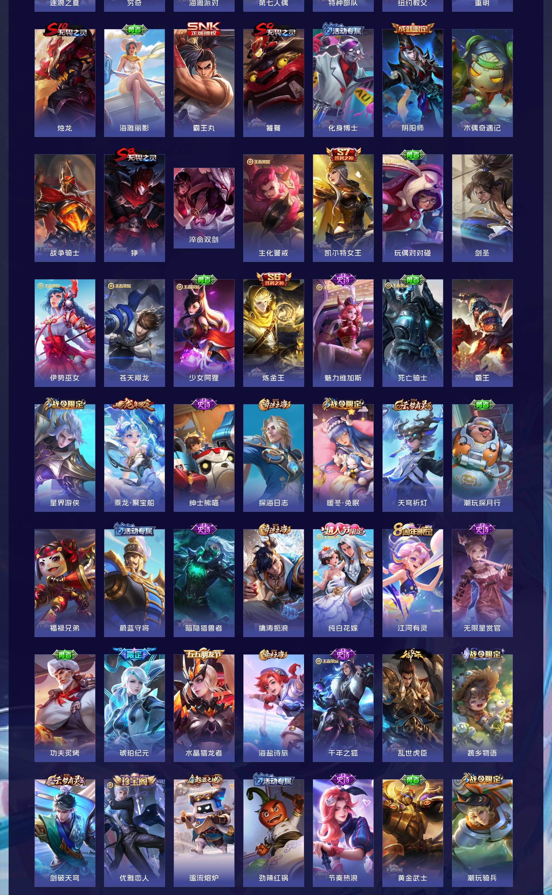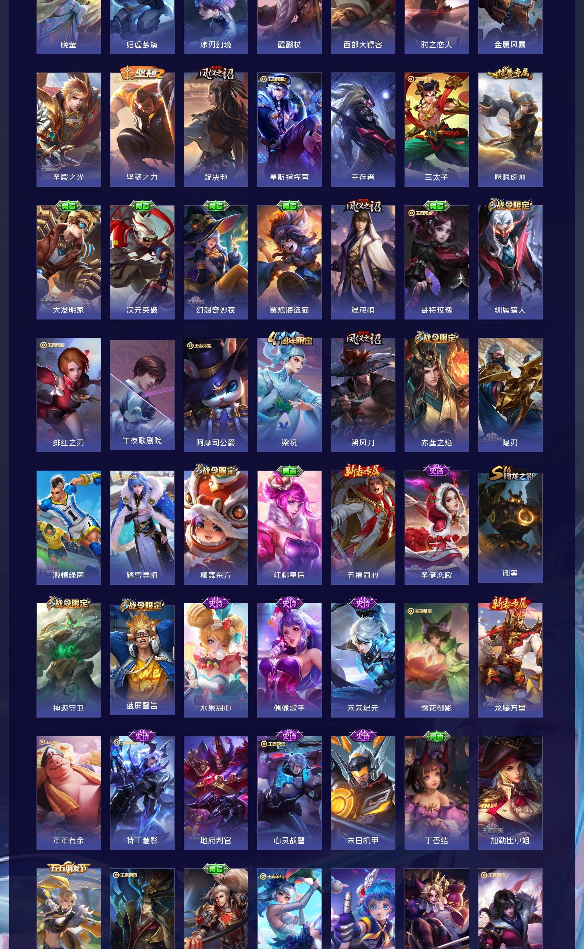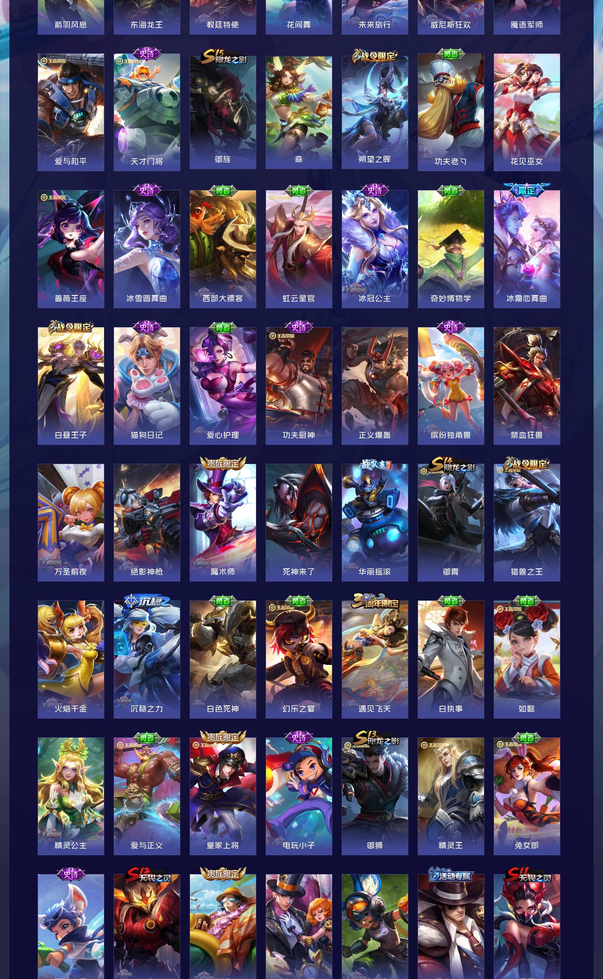 V10 皮肤449 英雄129 非凡王者 荣耀典藏7 无双皮肤3 珍品传说4 传说56 其他皮肤386
