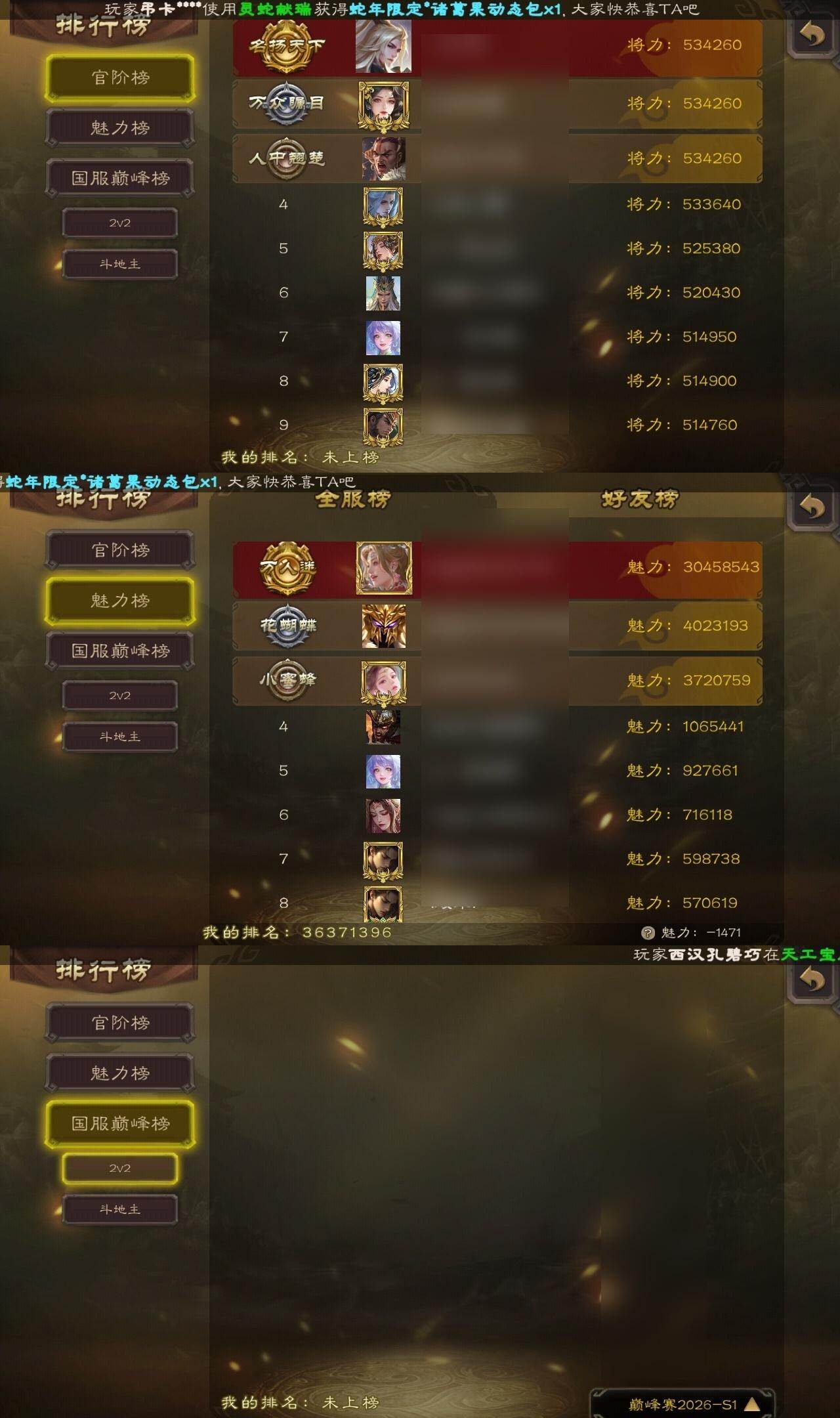 官阶:大将军;VIP等级:VIP11;史诗武将数量:46;动态皮肤数量:30