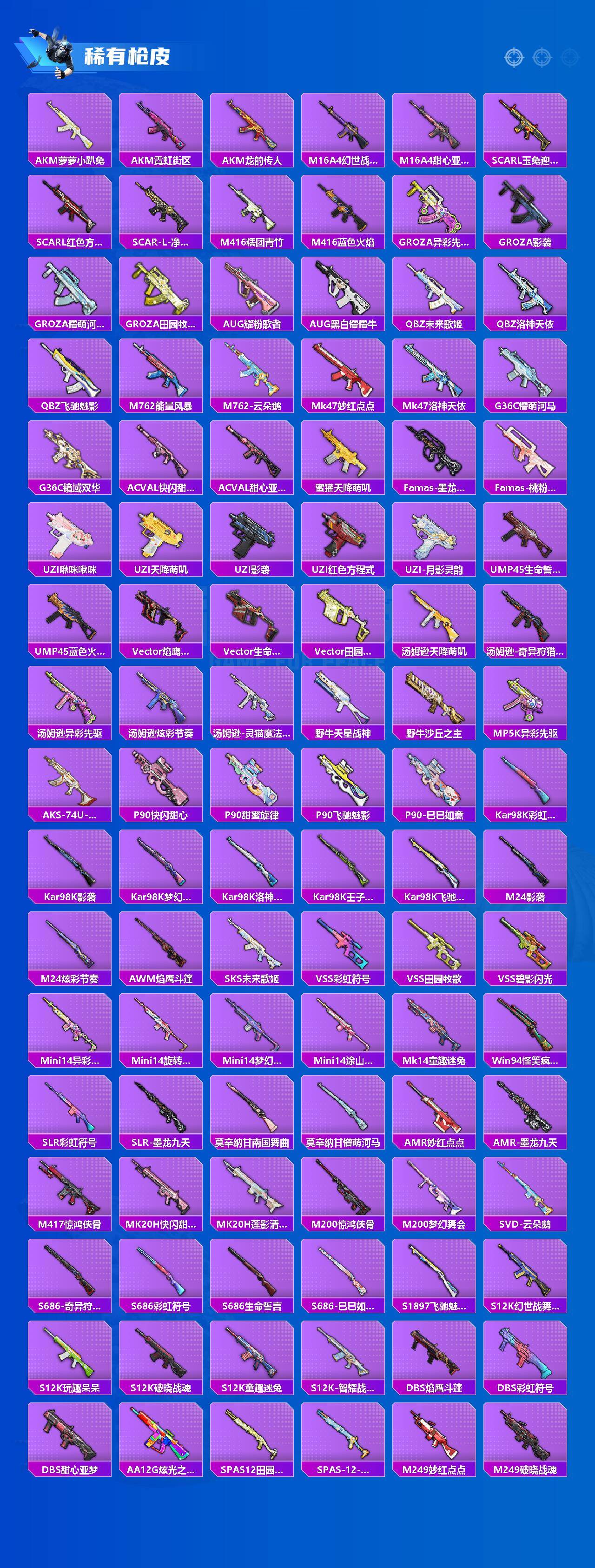 【粉色枪皮等级】:AKM-炫紫旋律(五级),SCAR-L-童趣迷兔(