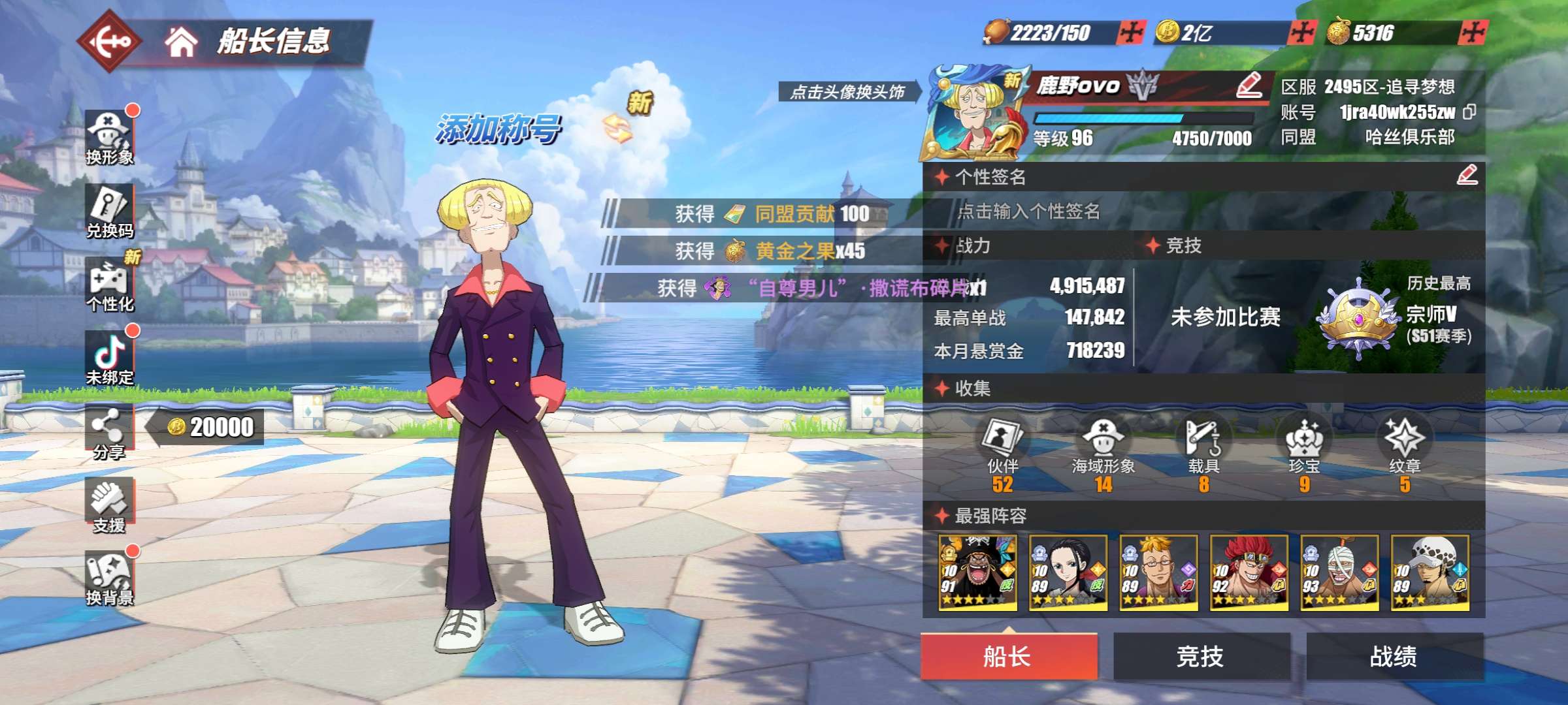 竞技场29传奇3强者,98希路麦波,四皇黑胡子,红发杰克斯,伙伴多,资源丰富,安卓苹果互通,账号安全