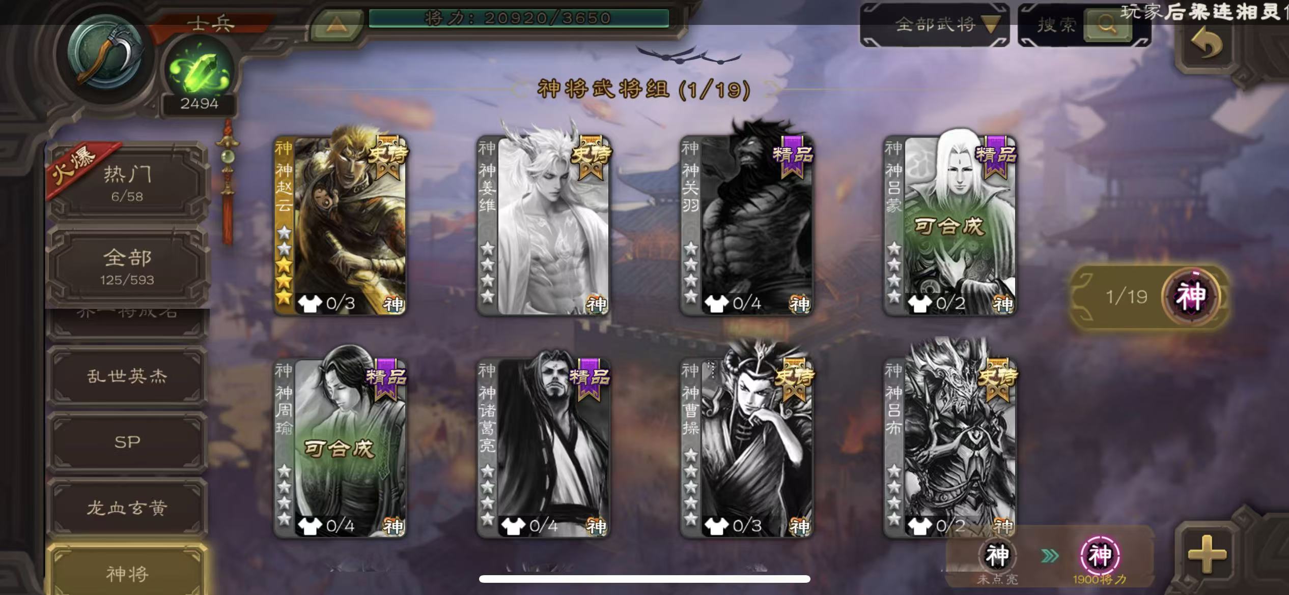 士兵杜预神赵云天宫势王永日2500将魂5万羽毛三卡