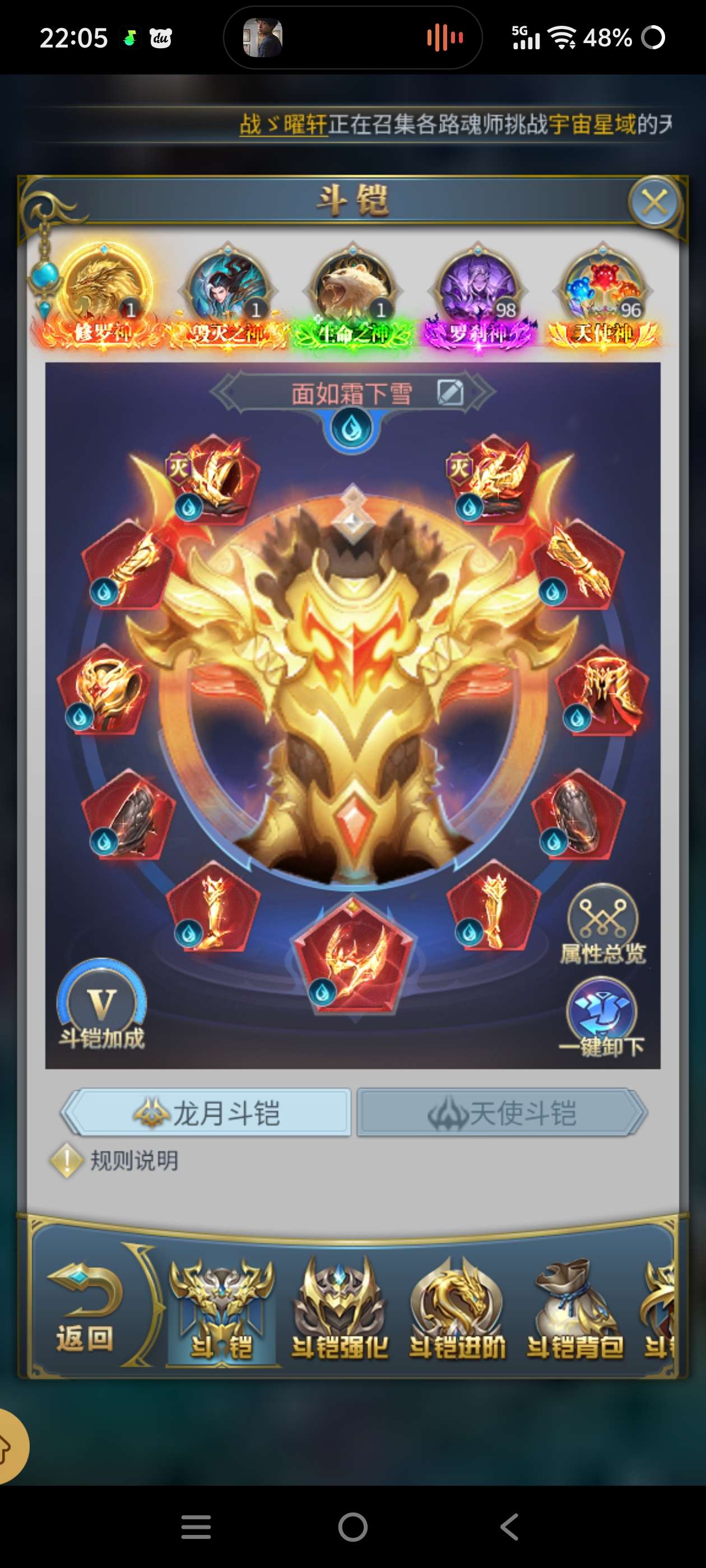 哈皮昊天7256可换绑,六套斗铠五套秘法四套幻彩唐门,56百万22红凶兽,三毁灭首饰两个绝魂导器
