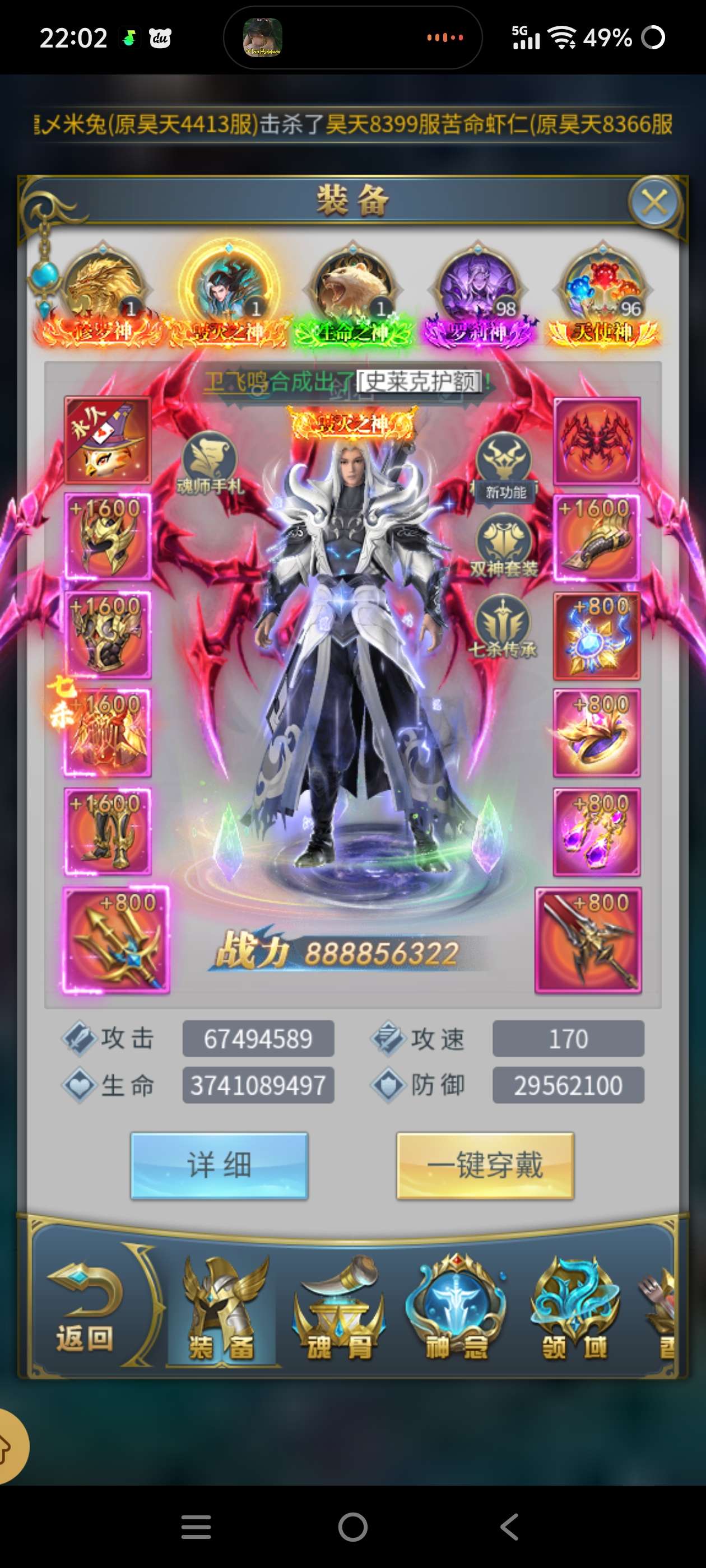 七窍54亿V15三神套满真身满龙魂满魂灵五套骨五草皇九排大奖有大金龙邪神虎审判套