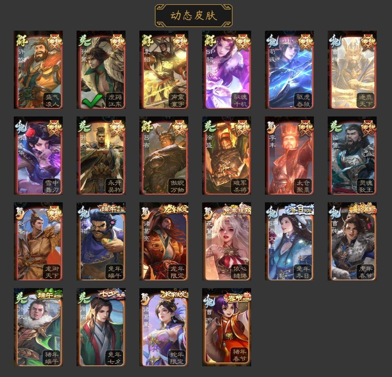神曹操,神吕布,神甘宁,神张辽,神吕蒙,神周瑜,神诸葛亮,SP司马昭,星周不疑,谋曹操,杨修,文鸯,界钟会,界于禁,界曹真,嵇康,曹纯,刘晔,马云騄,谋赵云,谋马超,诸葛瞻,沙摩柯,花鬘,董允,周处,吴景,骆统,留赞,界徐盛,界沮授,左慈,张让,苏飞,麹义,沮授,界左慈,界李儒,张