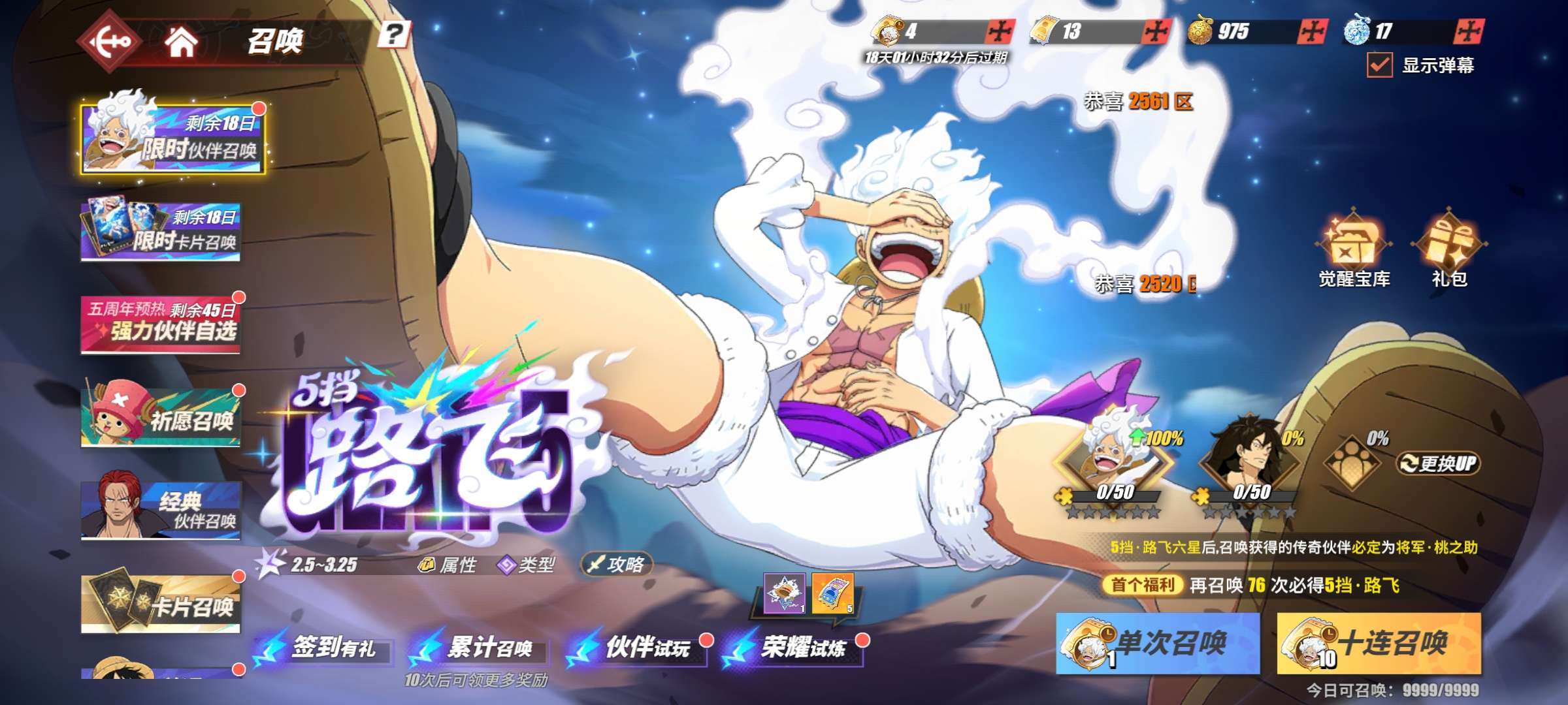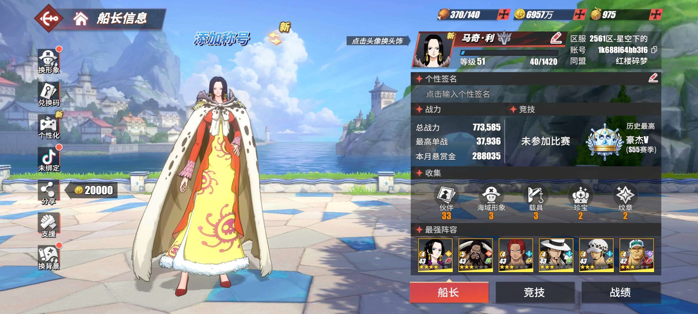 竞技场15传奇单强者女帝战斗皮肤,白衣路奇,红发凯多,和罗等官服苹果安卓都可以,拍下秒换绑定,