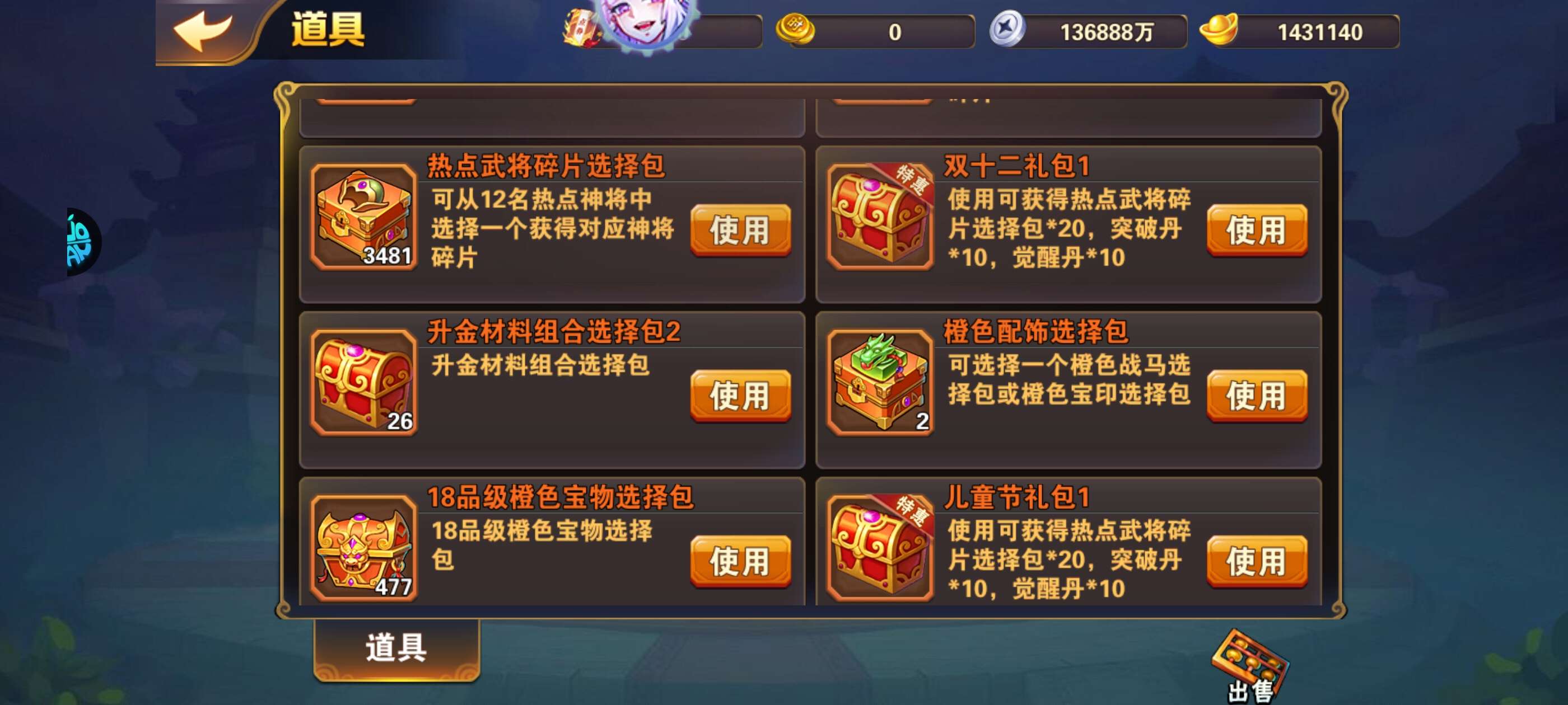 347红将自选140w元宝小号