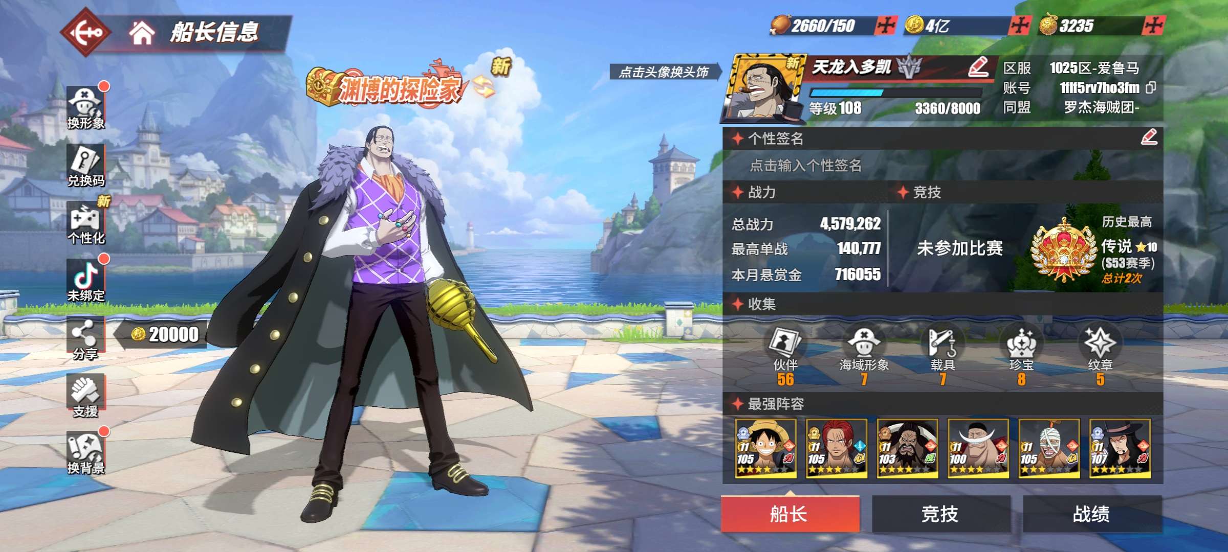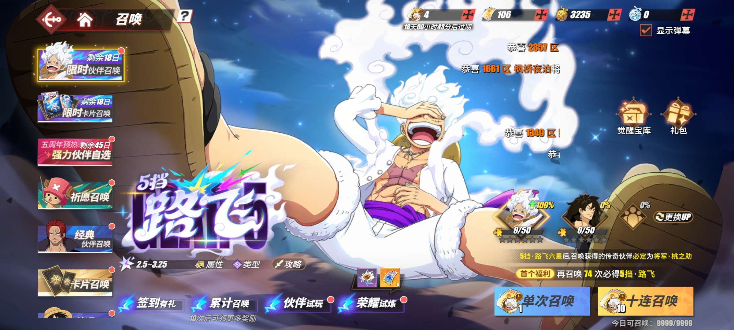 竞技场37传奇双强者白衣路奇,十字工会老沙,鬼路,红发,藤虎,文山等106抽,下个角色无压力官服版本