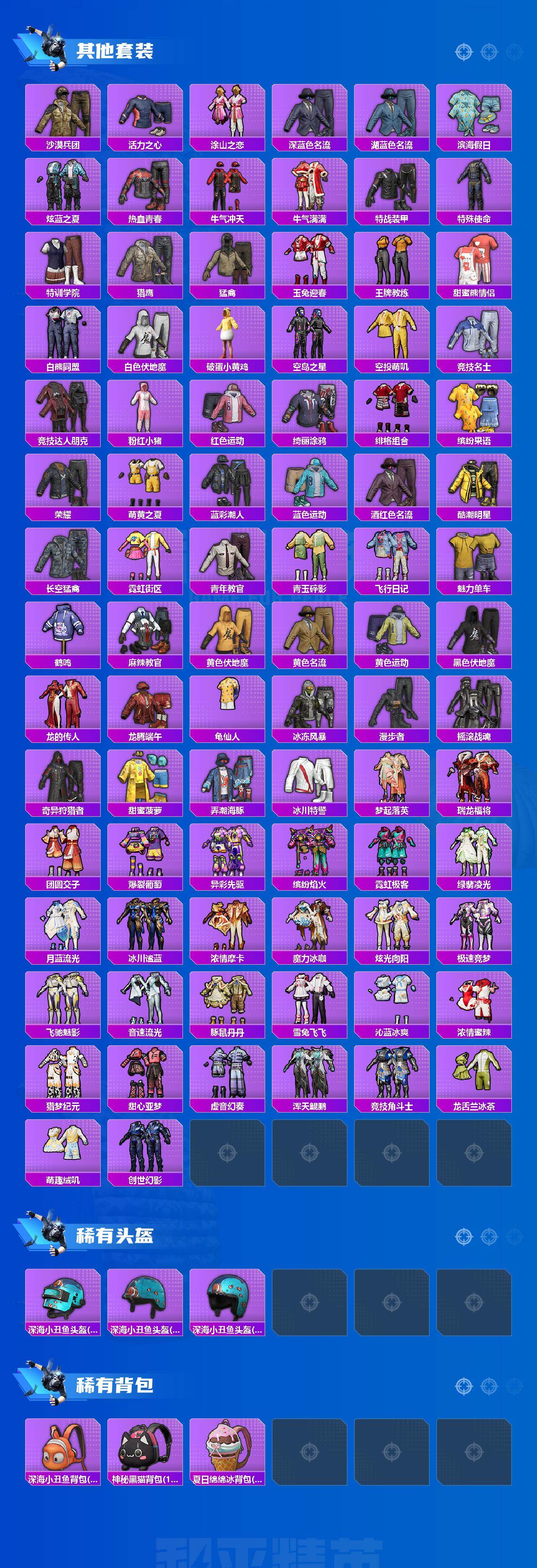 【粉色套装】:粉装-冰霜白皇,粉装-彩虹鹿灵,粉装-精灵娃娃,粉装-薄荷物语,粉装-恐龙拽拽,粉装-橘柚倾心,粉装-赤焰黑爵,粉装-紫电风暴,粉装-霞光圣骑