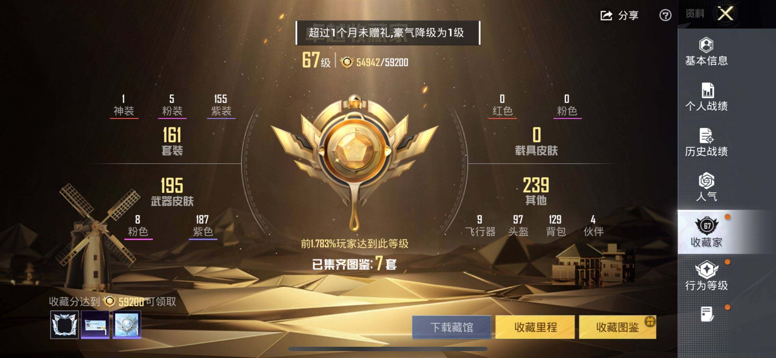 素材号-紫螳螂-火箭少女-蓝螳螂-都市-红眼罩-地铁满天赋-金蛇镇世烛九3级/千金淑猫/M4电玩时刻5级/AK幽焰骑士3级/粉雾星云/都市丽猫/银尘/金丰海韵/冷漠罗丽 (1神装-5粉装-8粉枪)没战神框HP5462-0载具-4粉色飞行器-70392热力值-8王牌印记-161套装-219枪皮