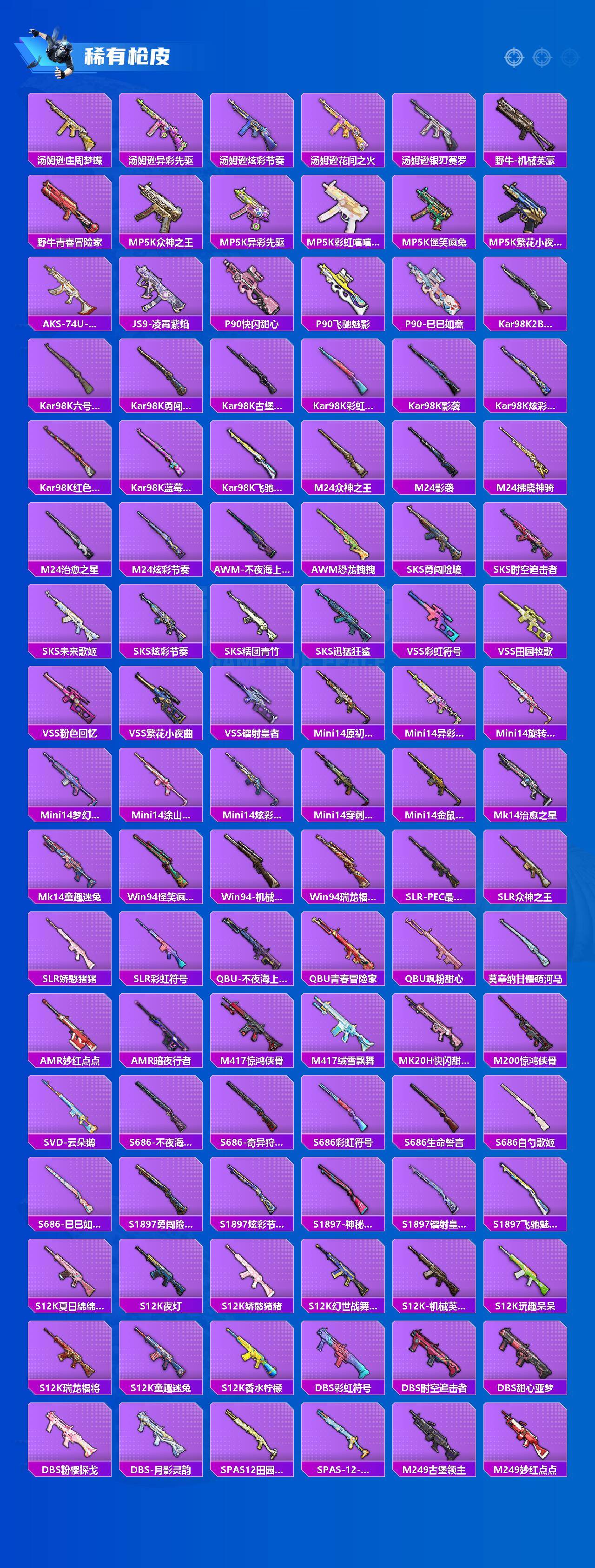 19粉装-11特效枪-1载具-8粉色飞行器-126810热力值-19王牌印记-283套装-375枪皮