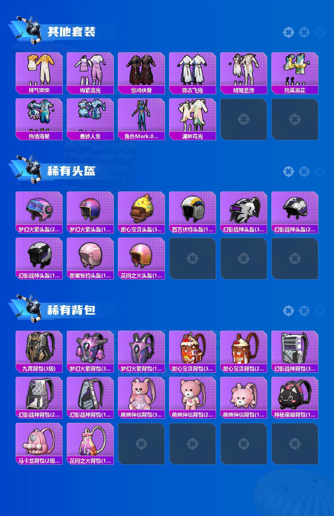 无敌战神框-1神装-17粉装-14特效枪-1载具-13粉色飞行器-118571热力值-16王牌印记-269套装-365枪皮