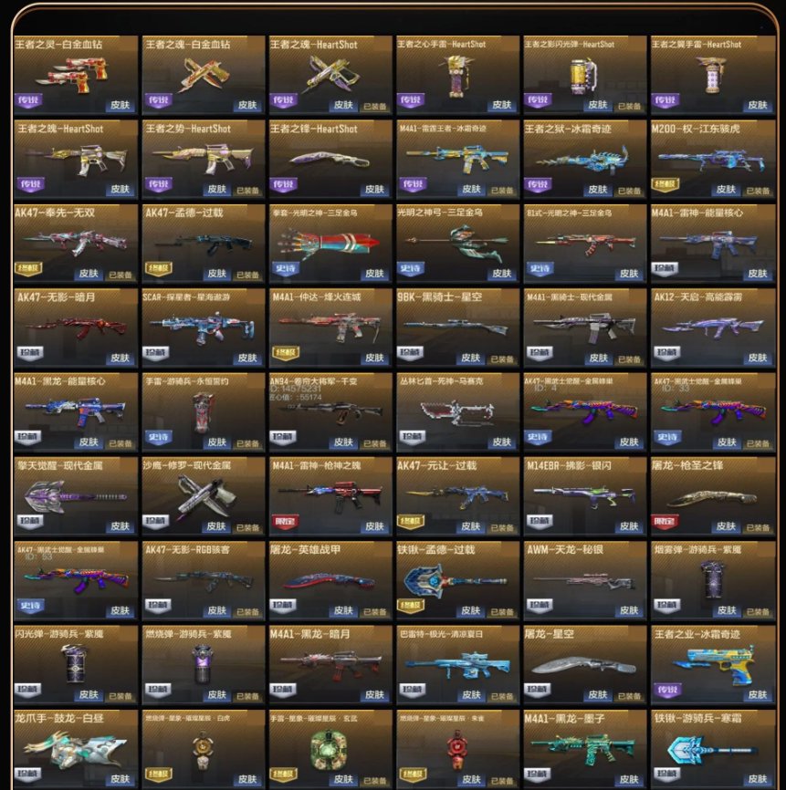 【安卓QQ】 角色等级:巅峰大元首 【角色】关小雨、晴雅、零-水下丽影、甄梦、零-新生、步练师、月神-X、幽灵刀锋-觉醒、钟小魁 【武器】王者之力、王者之霆、王者之影、王者之心、王者之势、王者之狱、M4A1-雷霆王者、王者之魂、AK47-奉先、AK47-孟德、AK47-元让、M4A1-星象、M200-权、AWM-妙才、KSG-孟获、CZS2-仲康、VEPR12-本初、沙鹰-孟德、柯尔特-仲达、双持GLOCK18-本初、思召剑、铁锹-孟德、尼泊尔-星象、M200-幻神、TAC-雷暴、AWM-竞界荣