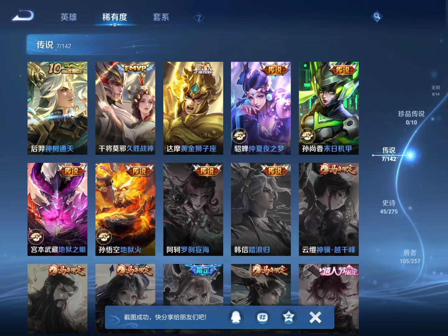 223皮肤V7 1典藏 7传说 1星传说 至尊宝 地狱火