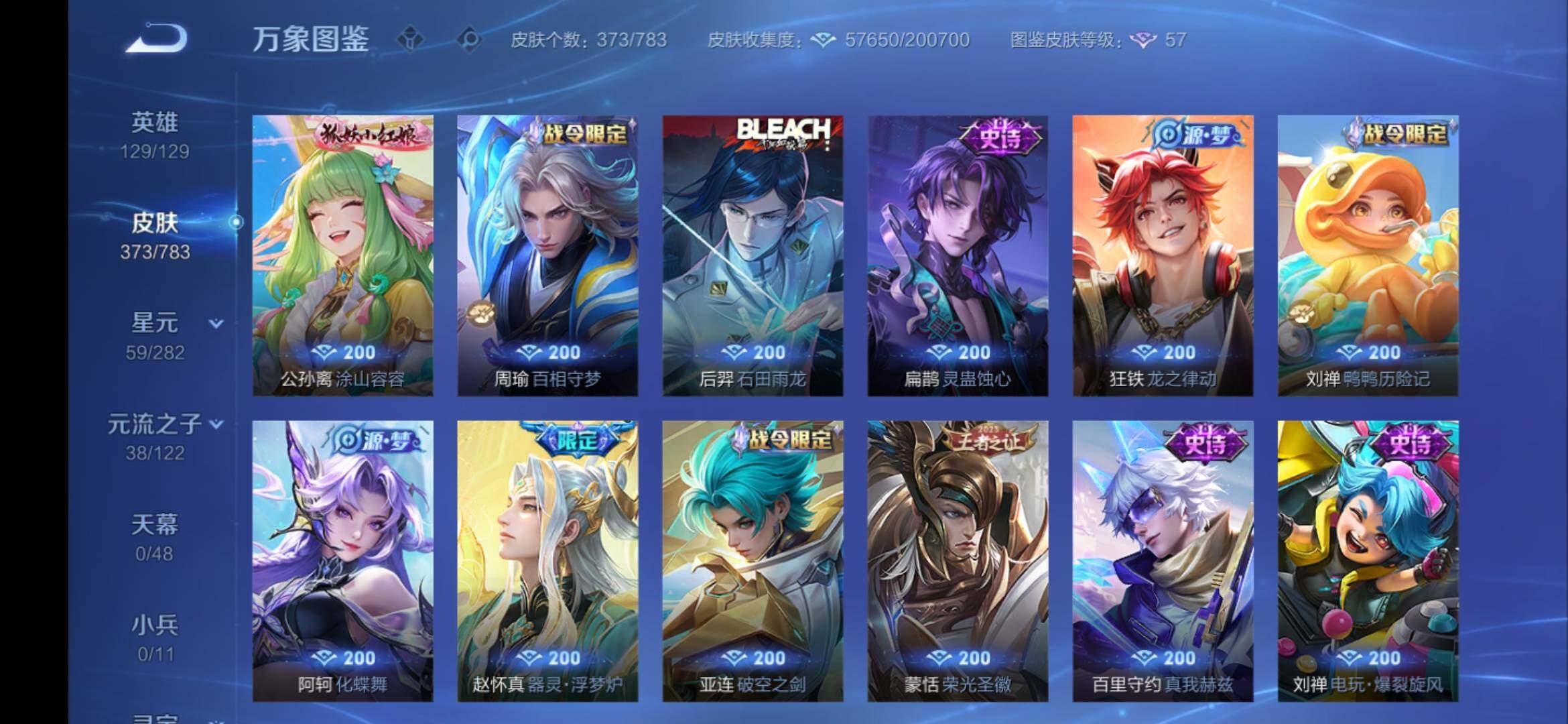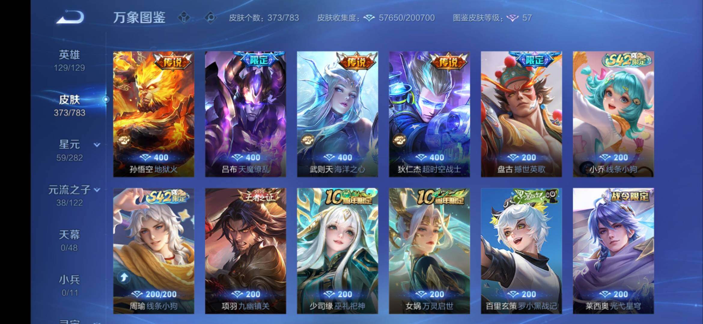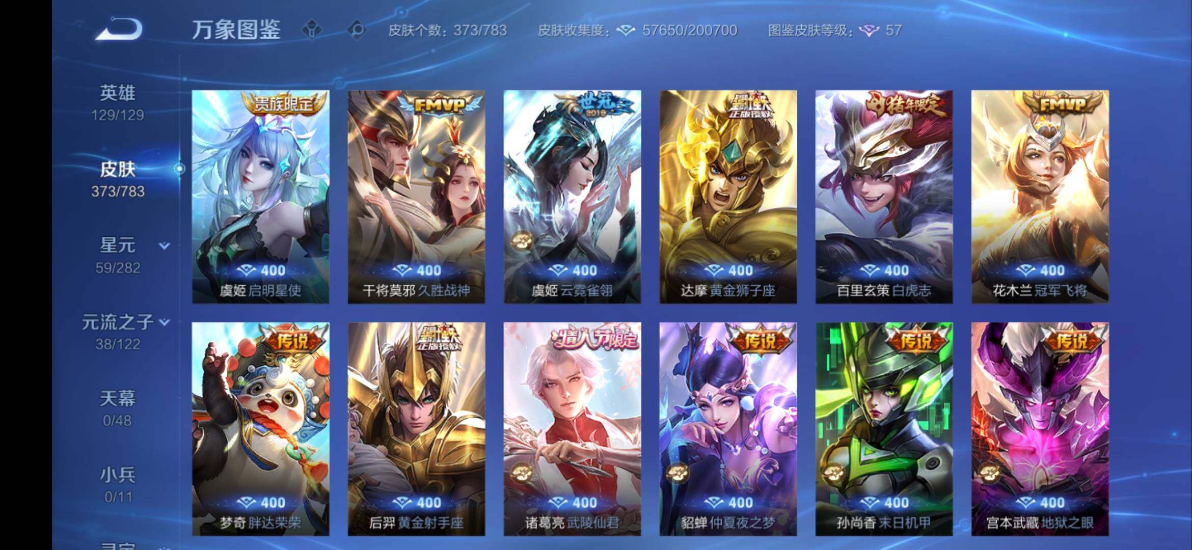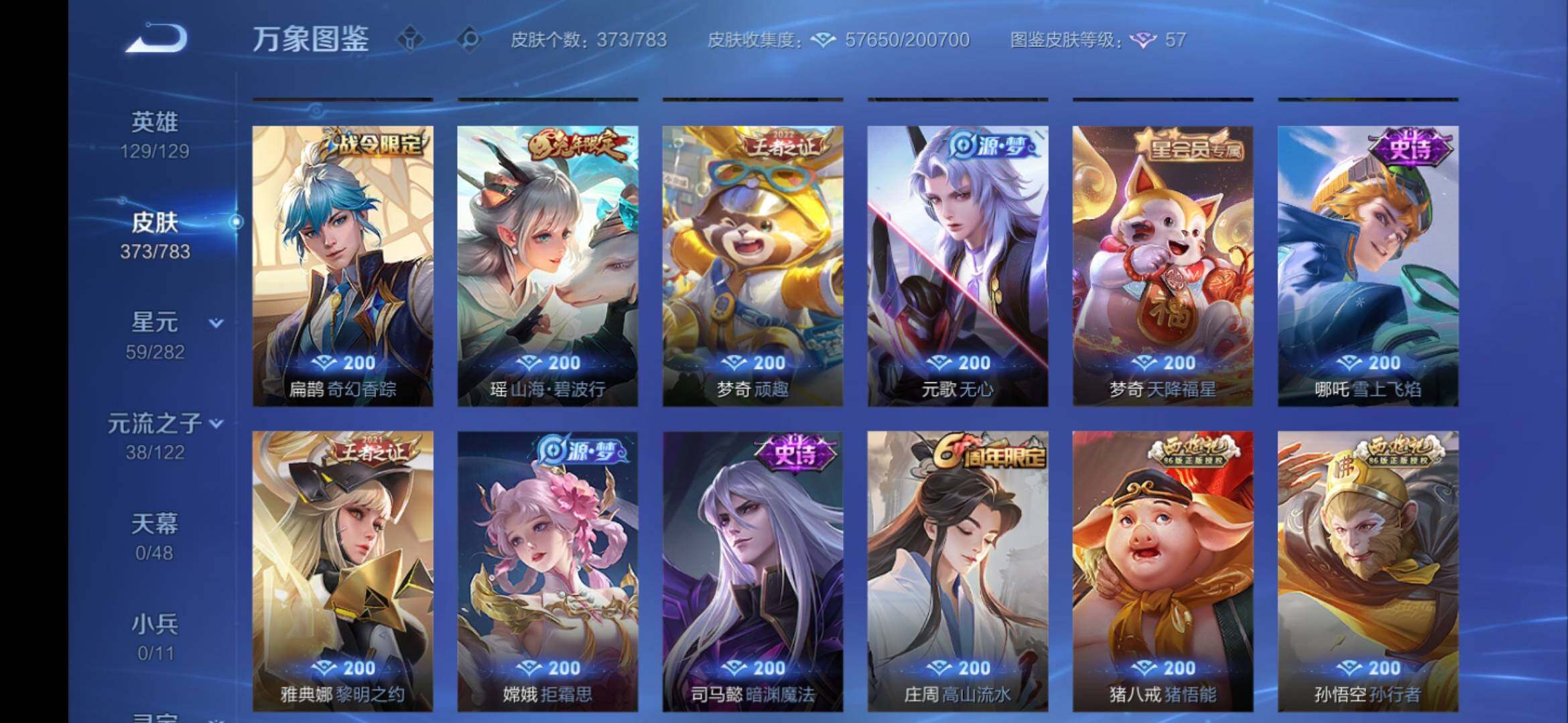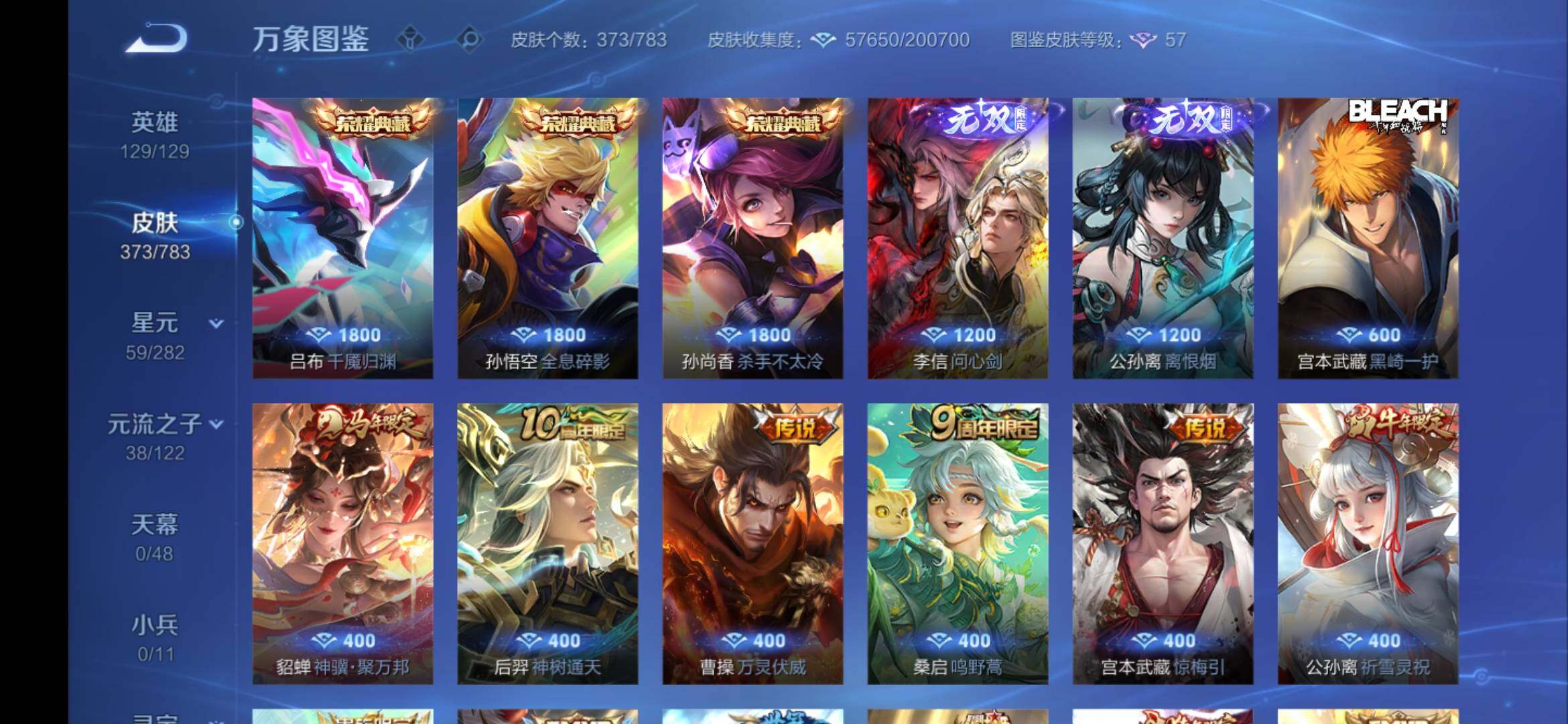 安卓Q-V9-129英雄-373皮肤-3典藏皮肤-1典藏英雄-2无双-1珍品传