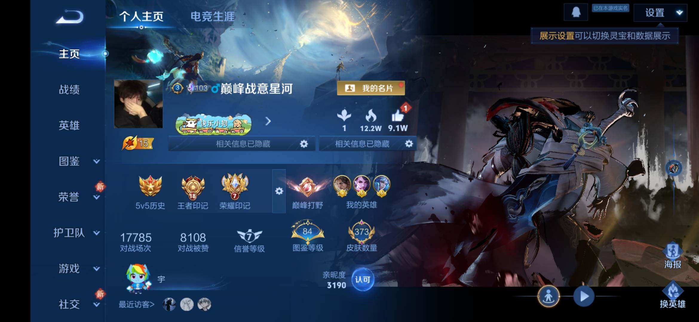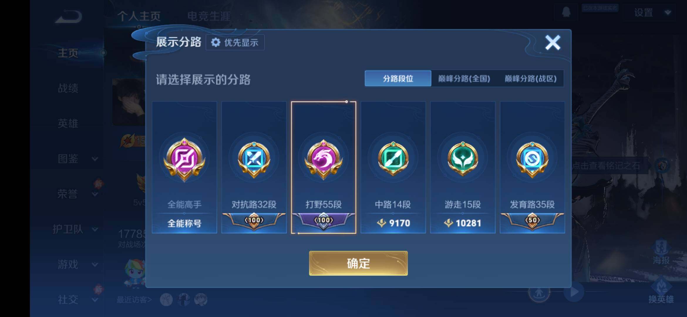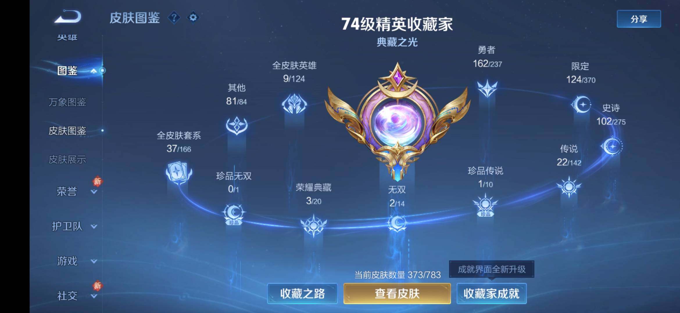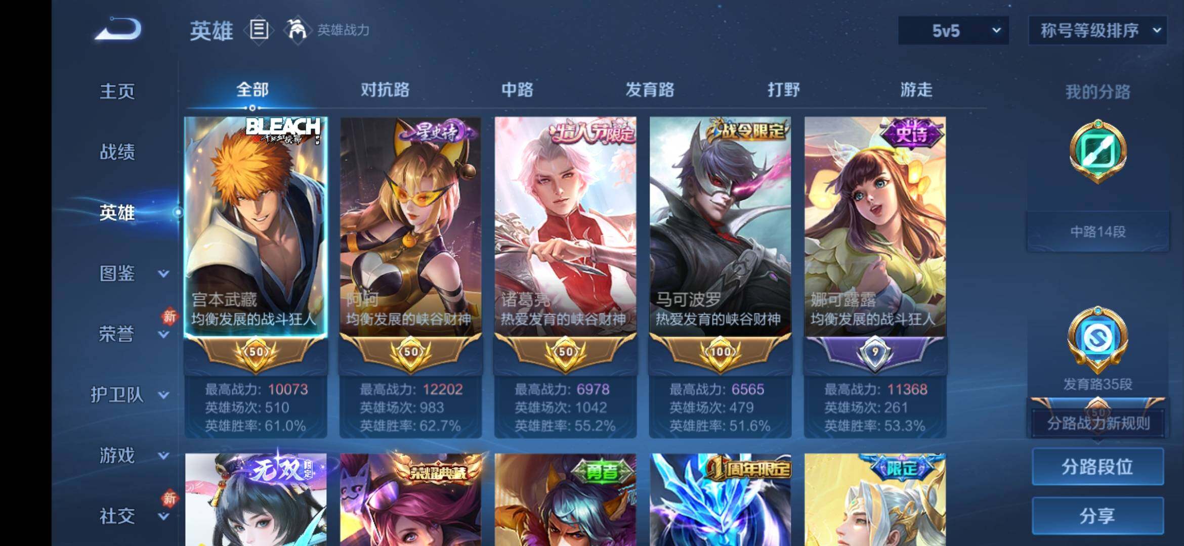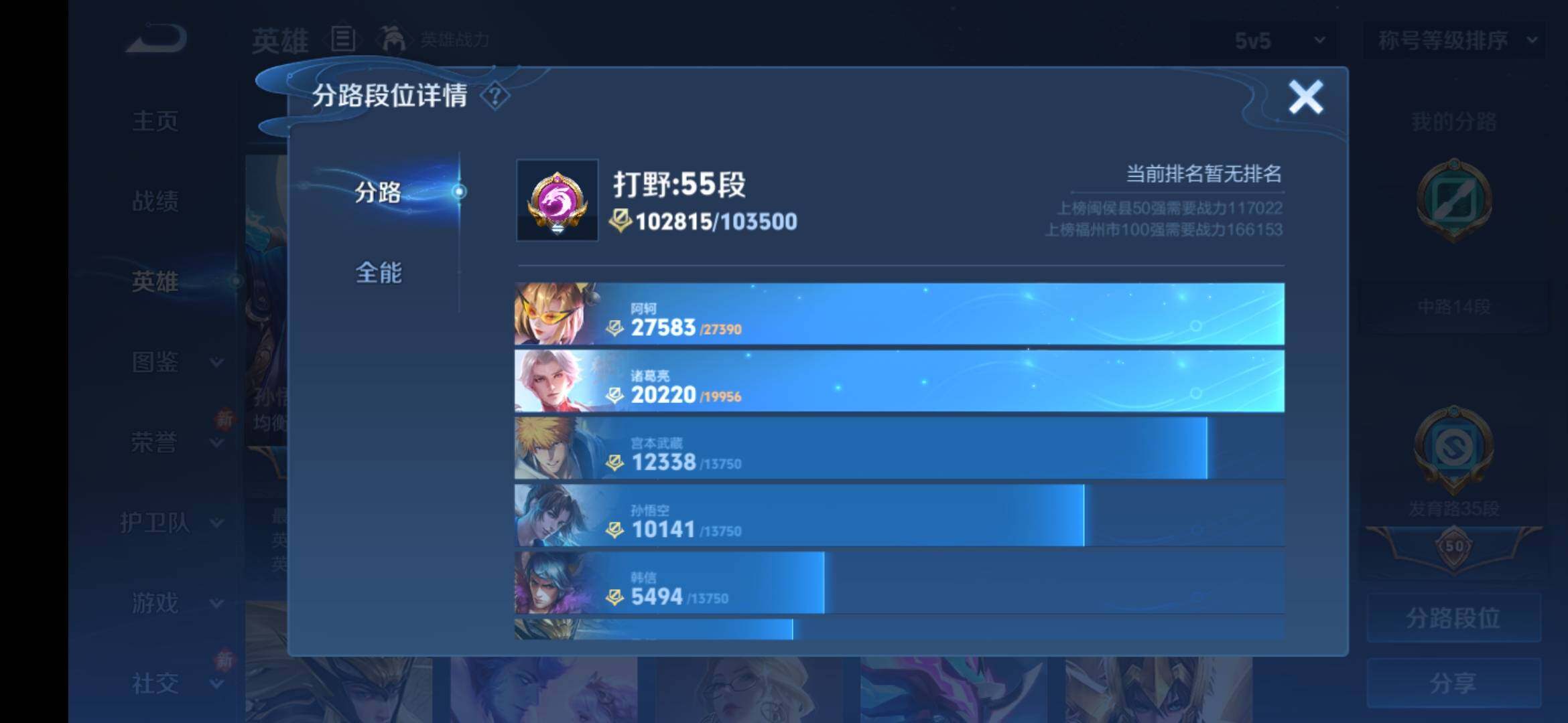 安卓Q-V9-129英雄-373皮肤-3典藏皮肤-1典藏英雄-2无双-1珍品传说-5星传说-22传说-101史诗-4金标,巅峰打野分路,发育35段,对抗32段,有至尊宝,