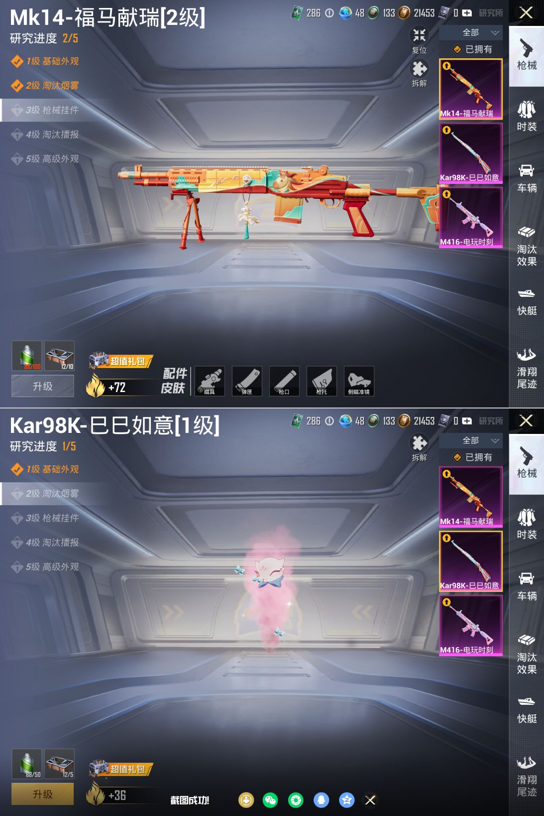 【女号5粉装-3特效枪 猪脸 天使彩虹糖 第五大道 小白龙】苹果手Q-5粉装-3特效枪-105套装-107枪皮-5王牌印记-坚韧铂金Ⅲ-33060热力值【5粉装】新星烈龙 第五大道 海盐物语 天使彩虹糖 缤纷油彩【3特效枪】M416-电玩时刻[5级] Mk14-福马献瑞[2级] Kar98K-巳巳如意[1级]【2飞行器】心之恋语飞行翼 鸡智如我飞行器【1背包】甜心宝贝背包【204其它衣服和枪皮】飞