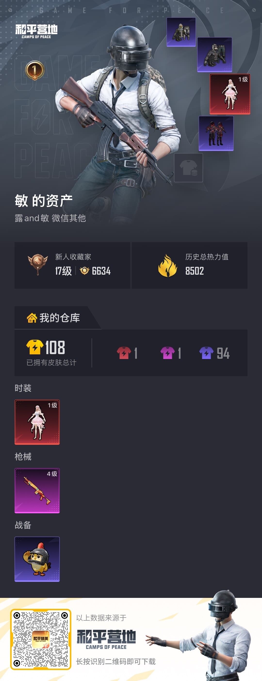 安卓 微信-1神装-0粉装-1特效枪-0载具-0粉色飞行器-8502热力值-1王
